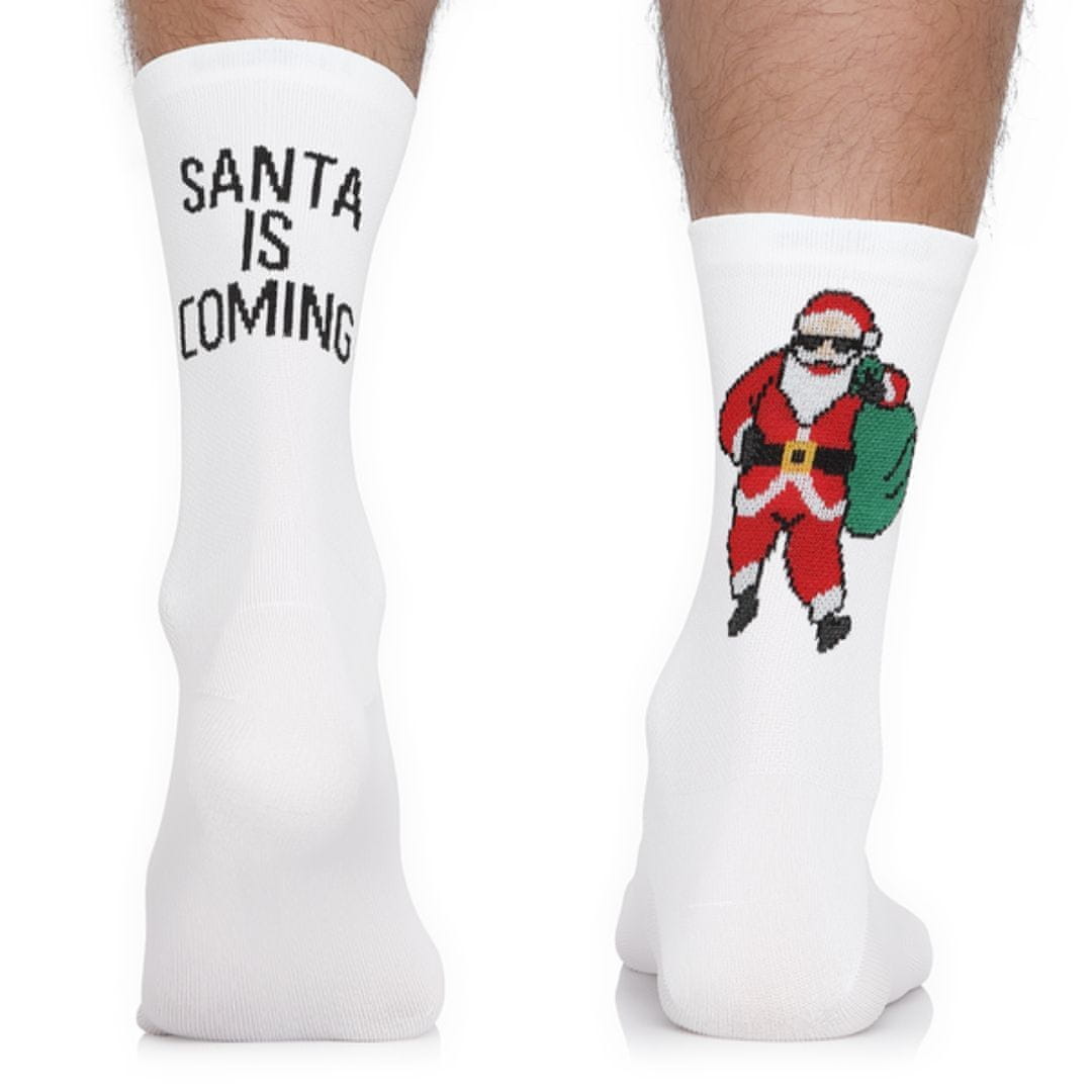 shumee Športne božične kolesarske nogavice Todo Cycling Pro z Božičkom PRIHAJA BOŽIČEK, kolesarske, cestno bele 43-46