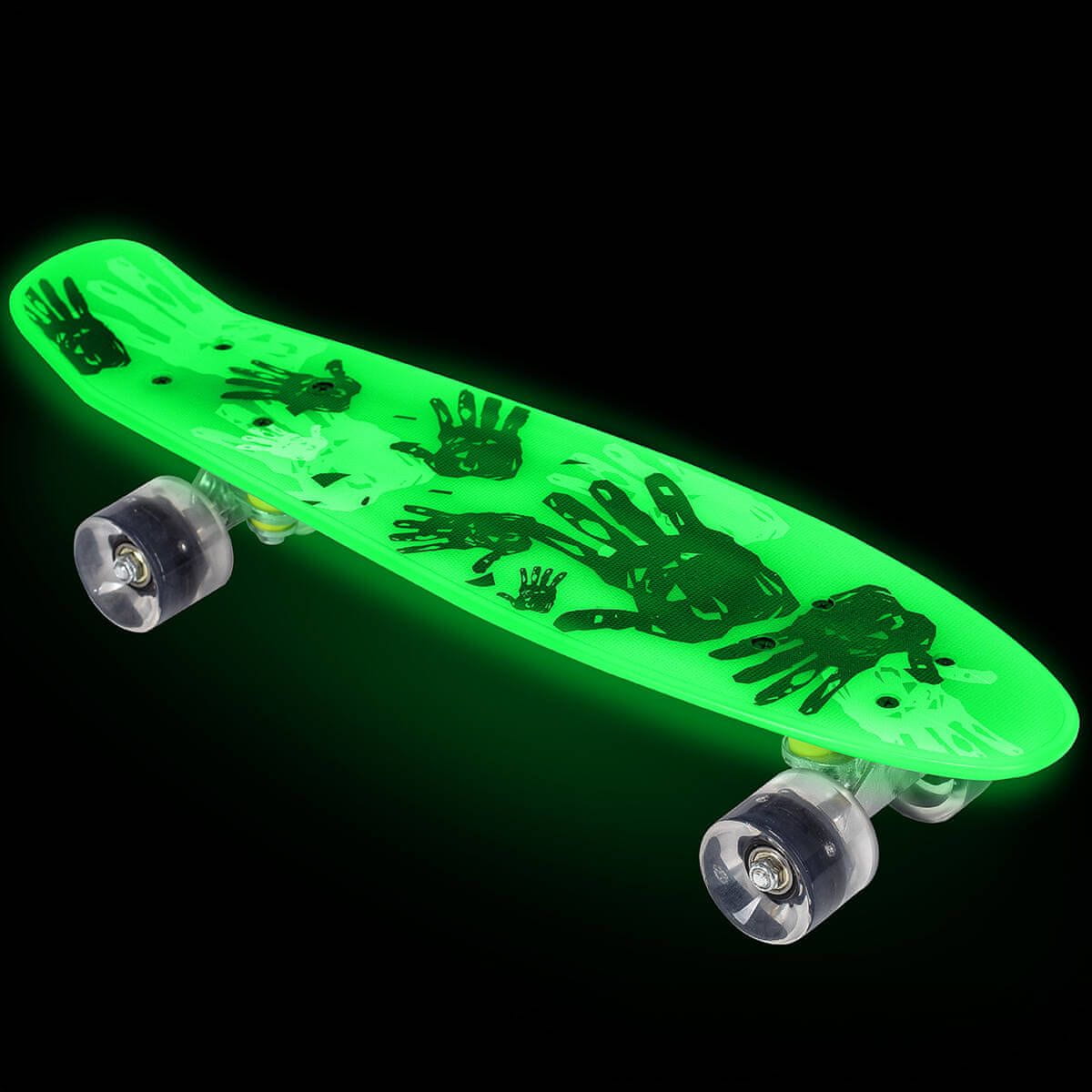 Plastična rolka Glow in the Dark s svetlečimi LED kolesi je idealen sopotnik za vsakodnevne dogodivščine. Kompaktna dolžina 57 cm omogoča enostavno prenašanje v nahrbtniku, medtem ko narebrana površina proti drsenju in kakovostni ležaji ABEC-5 zagotavljajo varno in tekočo vožnjo. Celoten opis