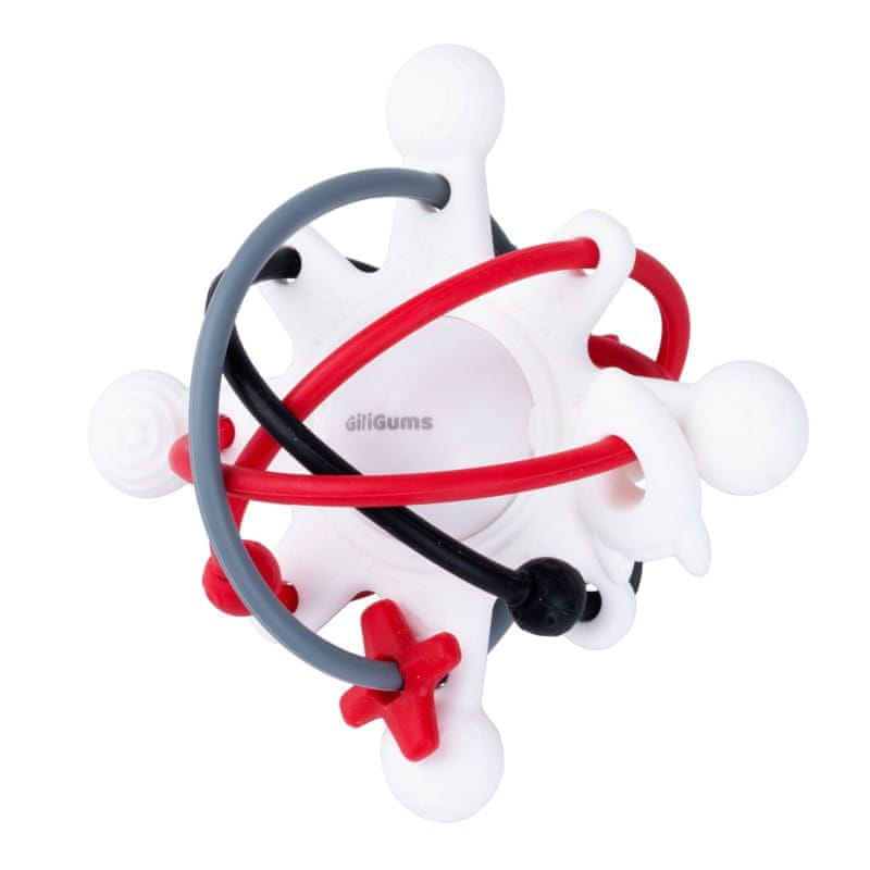 Kontrastna ropotulja Giligums. Ropotuljica z mehkimi elementi v različnih teksturah, ki bo prinesla olajšanje tudi dojenčku pri izraščanju zob. Oblika omogoča, da male ročice lažje pograbijo igračo. Lastnosti izdelka: raznolike teksture ropotulji ob tresenju izbokline za masažo dlesni prilagojene majhnim dlani mehki silikonski elementi Starostna kategorija: 3m+