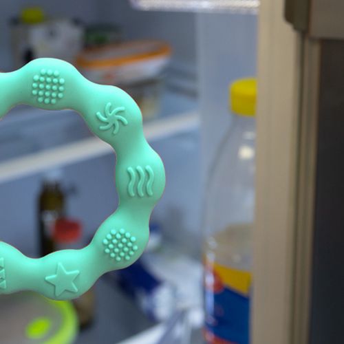 Silikonsko grizalo v obliki kroga je nepogrešljiv pripomoček za izraščanje zob. Lahko ga ohladimo v hladilniku ali pa nanj nanesemo poseben gel. Ta pomaga lajšati bolečine v dlesnih, ki jih povzroča rast zob. Prožen in mehak material z različnimi teksturami nežno masira otrokove dlesni.