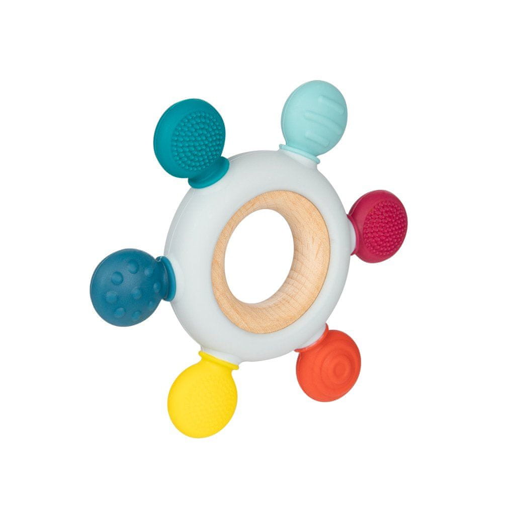 Drevesno-silikonsko grizalo je odlična rešitev za izraščanje zob. Izdelan je iz naravnega bukovega lesa in varnega silikona. Kombinacija materialov različne trdote in teksture bo vašemu otroku prinesla olajšanje med izraščanjem zob, z grizenjem in masažo bolečih dlesni. Zobotrebec je lahek in praktičen, zato ga je enostavno prijeti in udobno položiti v usta.