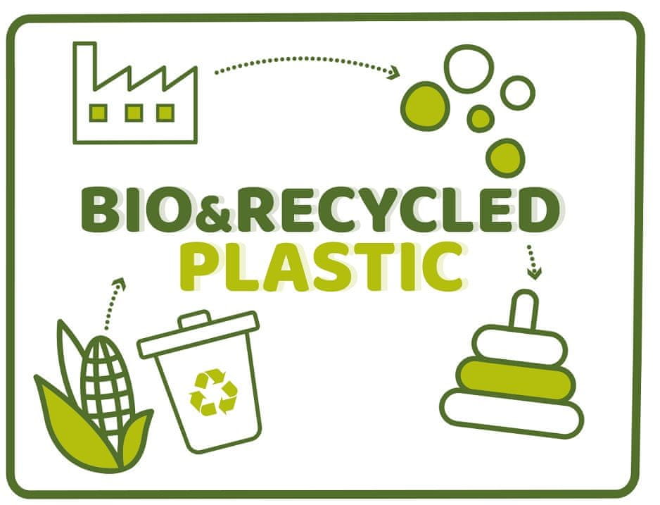 Igrača je izdelana iz 80 % reciklirane plastike in bioplastike iz rastlinskih virov.