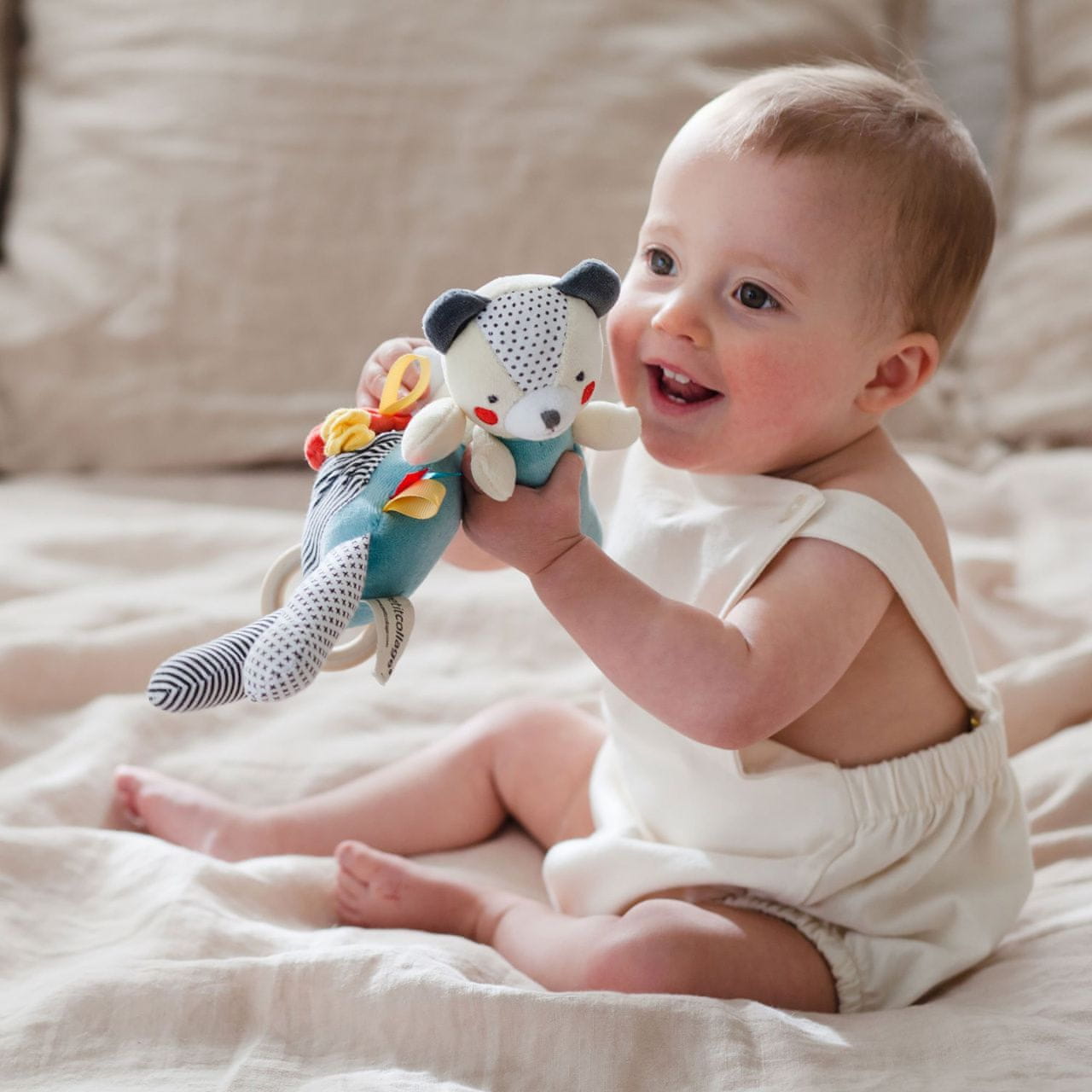 Zabaven medvedek s hrumenjem, ki pomaga razvijati fine motorične spretnosti. Idealen za vsakodnevno igro in zabavo na poti. Mehak ročno izdelan medvedek je kot nalašč za majhne otroške rokice. Glavne značilnosti.