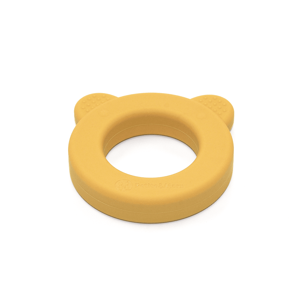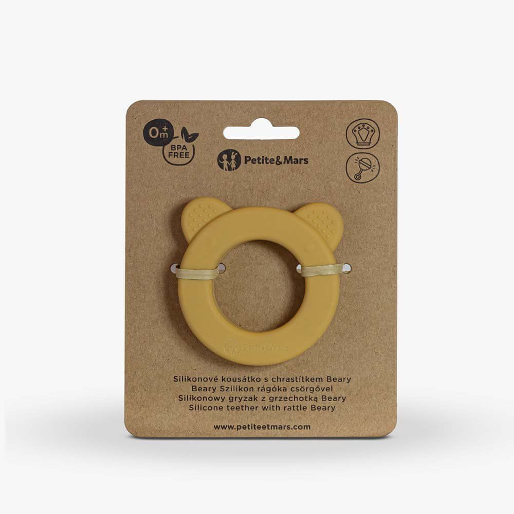 Petite&Mars PETITE&MARS Silikonsko grizalo z ropotuljico Beary Intense Ochre 0m+