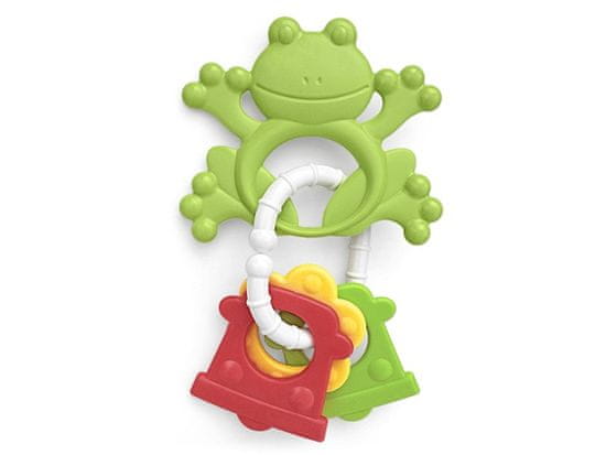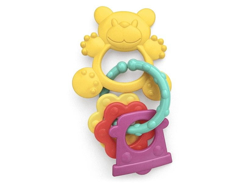 Vesela pisana ropotuljica/igračka z dvema plastičnima značkama je namenjena najmlajšim. Ta praktični kos razvija tudi otrokove motorične in vizualne spretnosti. Mešanica barv, določene vrste ali barve ni mogoče izbrati, dobavljamo glede na razpoložljivost na zalogi.