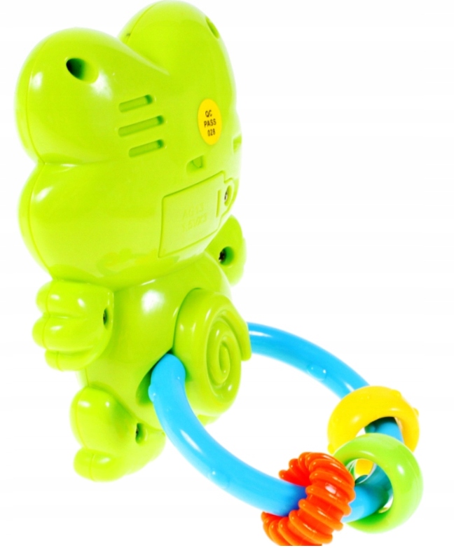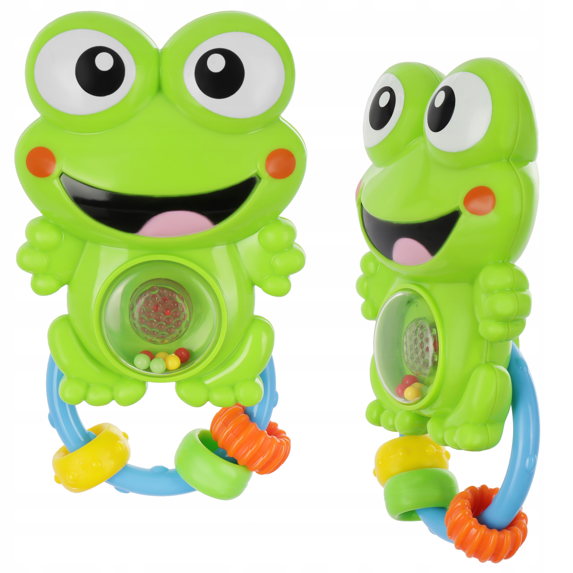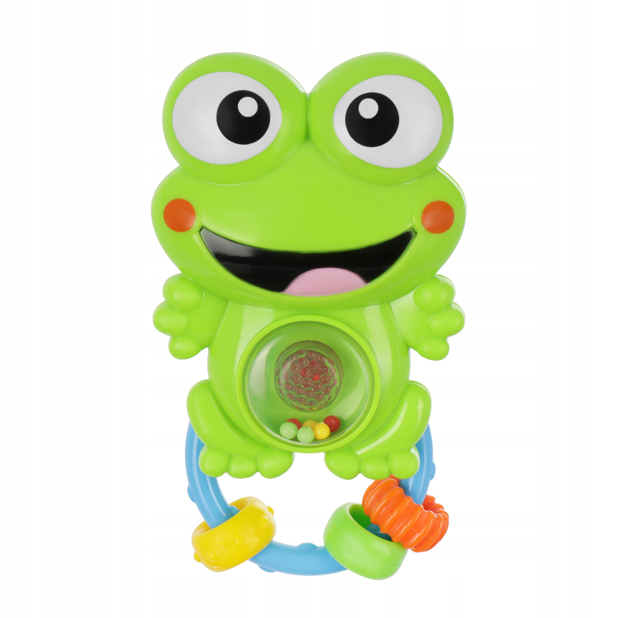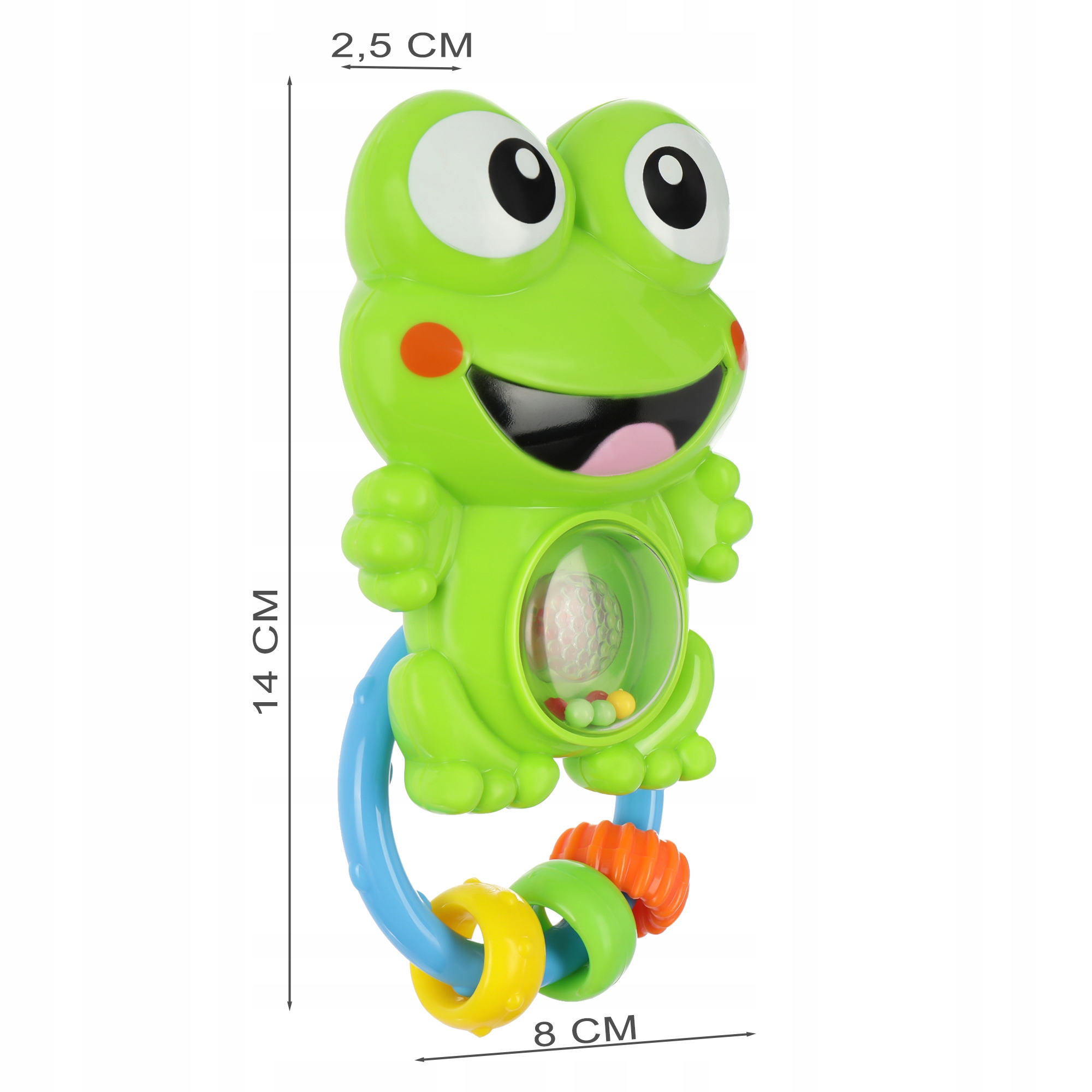 Ta ropotuljica je oblikovana kot ljubka, nasmejana žaba, ki bo vašemu malčku delala družbo med igro.