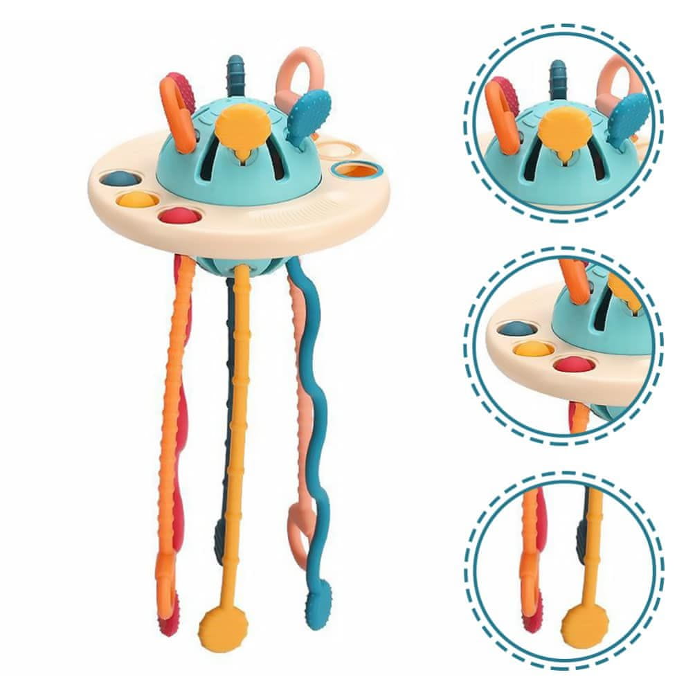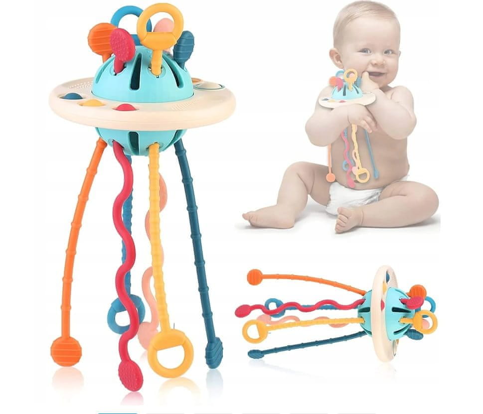 Popolna za majhne roke: Zabavna zasnova vesoljske ladje je za dojenčka enostavna za oprijem Teksturirane vrvice in konci omogočajo majhnim prstkom varen oprijem