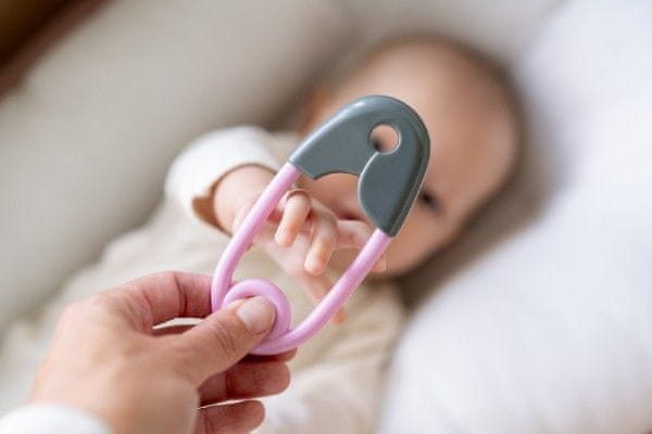 Teddies Ščipalka plastična 12cm sivo-rožnata 12x19cm v vrečki 0m+