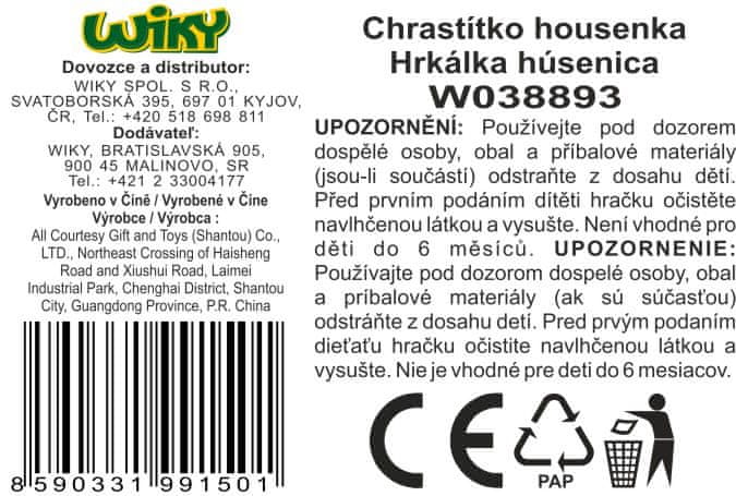 Maamaa Rattle Caterpillar. Velikost 16 cm. Gosenica je razdeljena na dele, ki jih je mogoče vrteti. Gosenica hrešči, ropota, ima piskalni gumb in ogledalo.