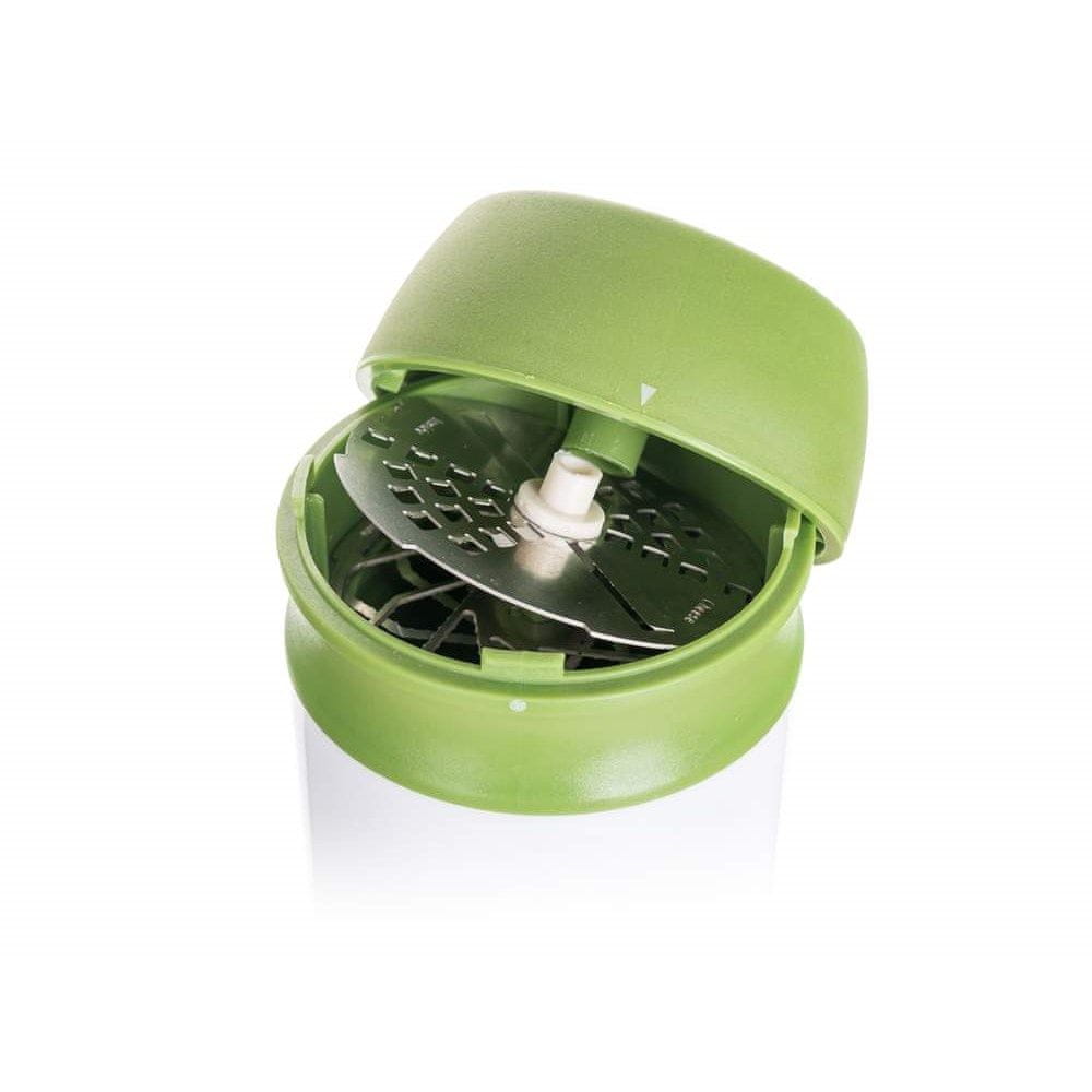 Rezalnik 3 v 1 CULINARIA je sestavljen iz 3 diskov za rezanje zelišč, sira in česna. Dimenzije: višina 12,5 cm, premer dna 6,8 cm.