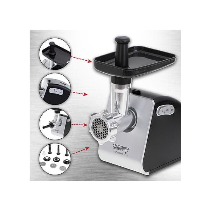 V kompletu so še nastavek za klobase, nastavek Kebbe in potiskalo. Enota je izdelana iz trpežnih materialov, enostavnih za razstavljanje in čiščenje.
