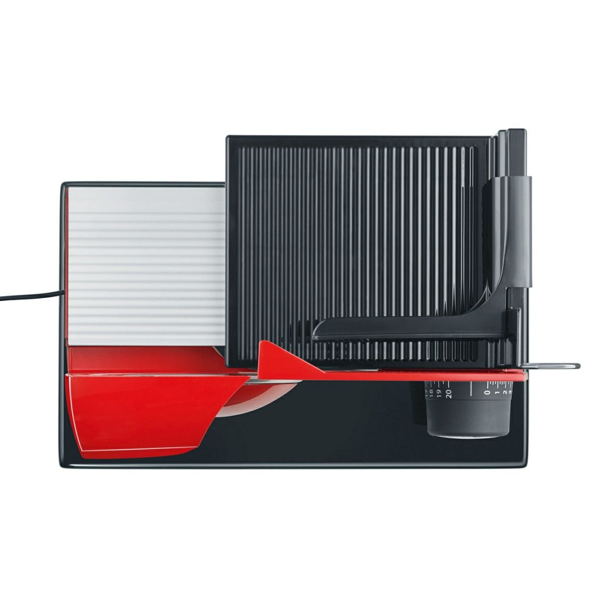 Rezalnik je standardno opremljen z nazobčanim nožem O 170 mm iz nerjavečega jekla. Z nožem živilskega rezalnika brez težav režete vse vrste kruha (tudi tiste s trdo skorjo), trdi sir, številne vrste zelenjave in narezke.