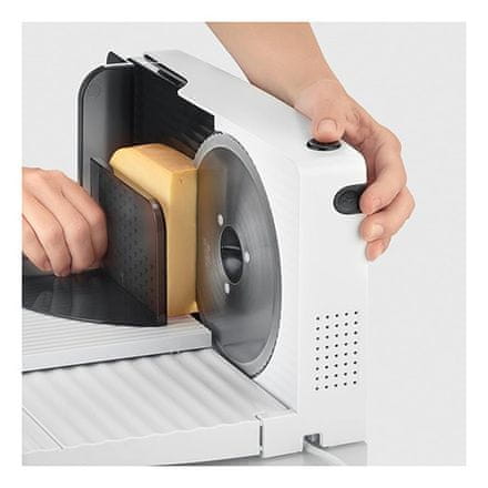 Značilnosti: – plastičen, kompakten, električni rezalnik z rezilom iz nerjavečega jekla – barva: bela/črna – moč enosmernega motorja 100 W – okroglo rezilo RSG Solingen: nemška kakovost in odlična. Celoten opis