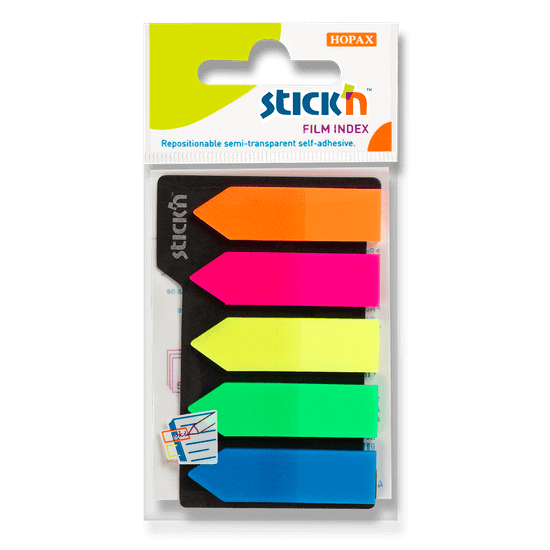 Stick'n Clearnote nalepke - puščice, 45 x 12 mm, 5 × 25 listov