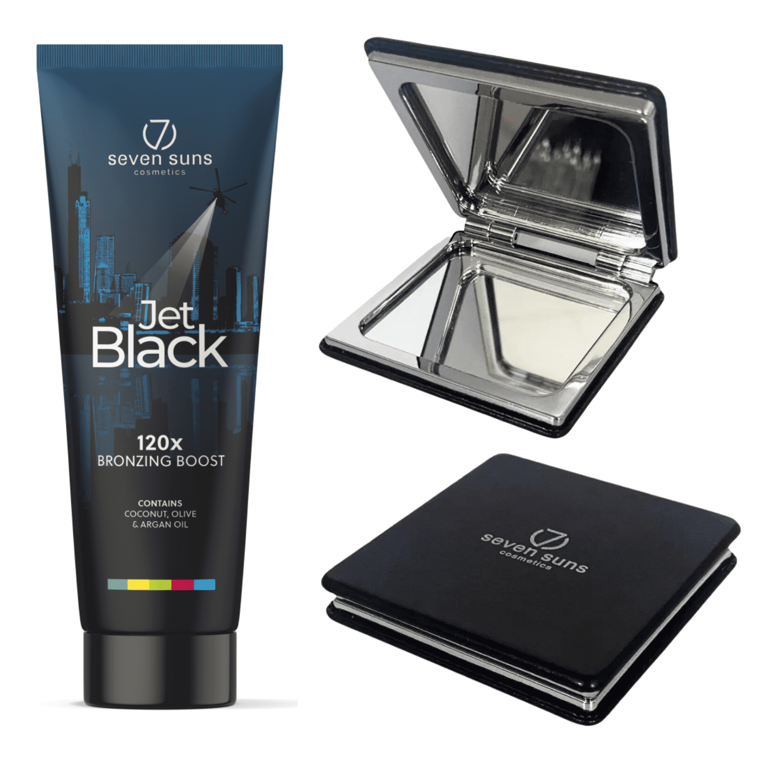 7suns Jet Black Bronzer 250 ml + brezplačno dvojno ogledalo. Izvleček orehove lupine v kombinaciji s takojšnjimi bronzerji in odloženimi bronzerji zagotavlja takojšnjo porjavelost, ki se sčasoma poglobi. Nega in zaščita kože: Skrbno izbrana naravna olja, združena v formuli MultiOil, zagotavljajo odlično nego in prehrano kože. Koencim Q10 in vitamin E zagotavljata učinek proti staranju. Formula HydroBalance podpira ustrezno raven hidracije kože. Sestavo bronzerja smo obogatili še z: formulo SkinFirming, ki poskrbi za učinkovito prodiranje sestavin in izboljša elastičnost kože, osvežilnim in revitalizacijskim kompleksom Energy Spirit ter formulo TattooSaver, ki ščiti videz in barvo tetovaž. Dišava: sladka Kapaciteta: 250 ml 7suns dvojno ogledalo z logotipom. Valjanje podlage, razmazovanje šminke, odsev maskare na veki … toliko stvari se lahko zgodi. Želite imeti vse pod nadzorom? Vrzite to majhno ogledalo v torbico, žep ali nahrbtnik. Zahvaljujoč robustni konstrukciji bo zanesljiv spremljevalec zelo dolgo časa.