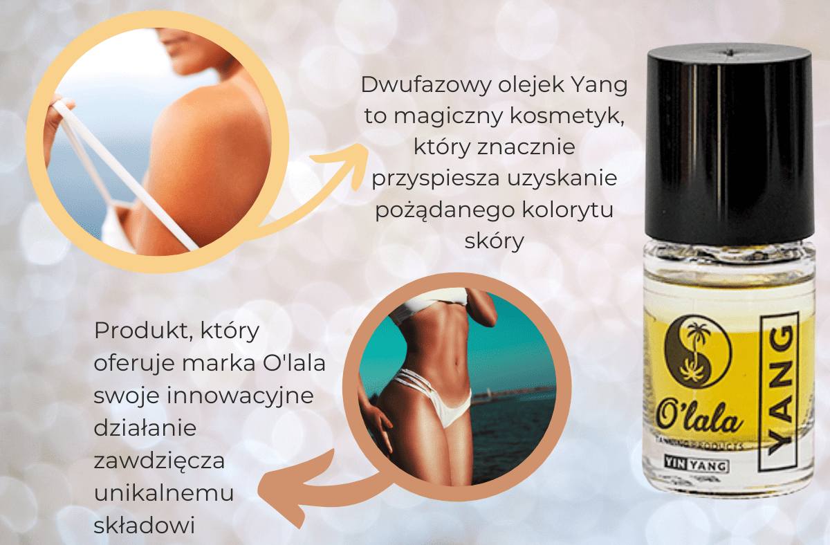 Suho olje Yang, ki pospešuje porjavelost, vam ne bo le pomagalo do želene porjavelosti, temveč bo poskrbelo tudi za ustrezno hidracijo in hranjenje vaše kože. To bo pomagalo ohraniti mladosten, zdrav in privlačen videz. Želite sončno, a zdravo porjavelost, kot po počitnicah na Karibih? Vsekakor preizkusite ta izdelek O'lala!
