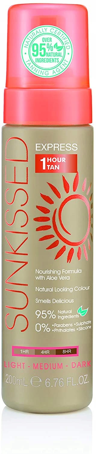 Pospešite svoj proces sončenja z našo Sunkissed Express 1 Hour Tan. Ta lahka obarvana pena je enostavna za nanašanje in vsebuje aktivno sestavino, ki pospeši proces porjavelosti, tako da se bo vaša porjavelost začela razvijati v samo 1 uri!