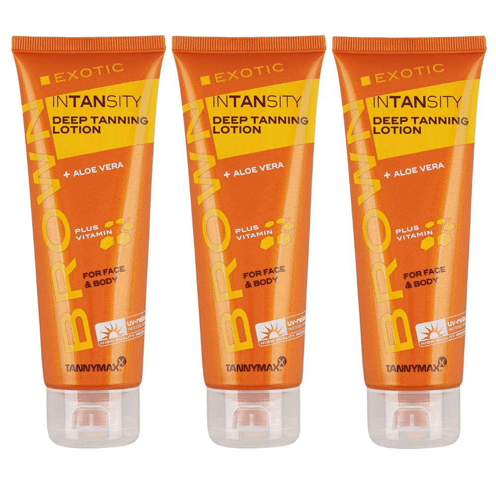 Brown Exotic Intensity Tanning Lotion je obogaten s tirozinom, melaninom, alojo in mešanico vitaminov, zaradi česar je izjemno učinkovit pri doseganju temne porjavelosti.