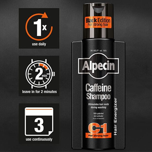 Šampon Alpecin Caffeine C1 v novem hladnem črnem dizajnu in z novo dišavo. Njegov patentiran aktivator pomaga preprečevati dedno izpadanje las in jih krepi. Že med umivanjem stimulira lasne korenine. Šampon je brez silikona. Celoten opis