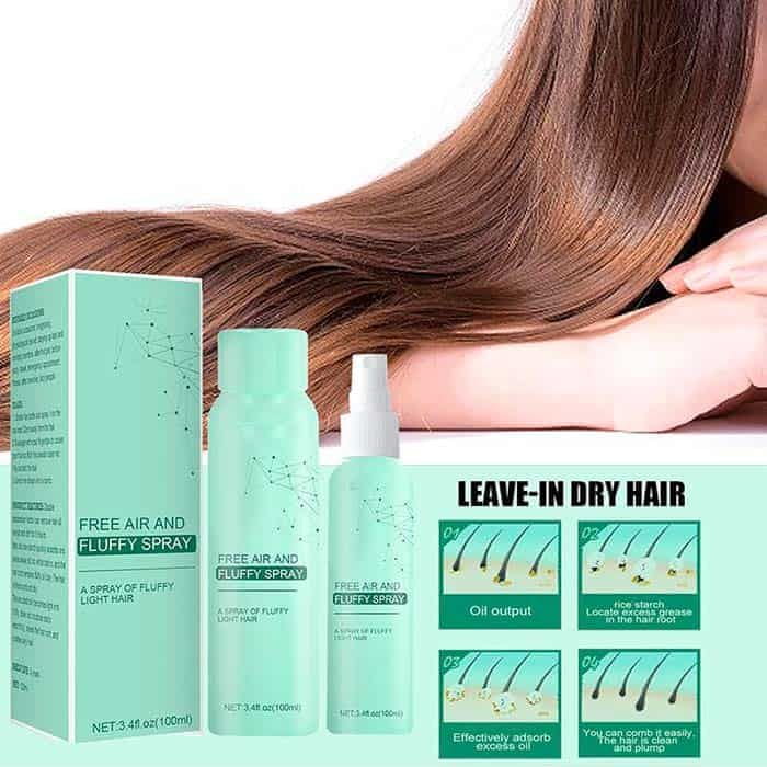 Netscroll 2 v 1 Suhi šampon in pršilo za mehke in zdrave lase, suhi šampon za izjemen volumen las za žensko, zagotovljena svežina las, suhi šampon za moške, proti suhim konicam, FluffySpray