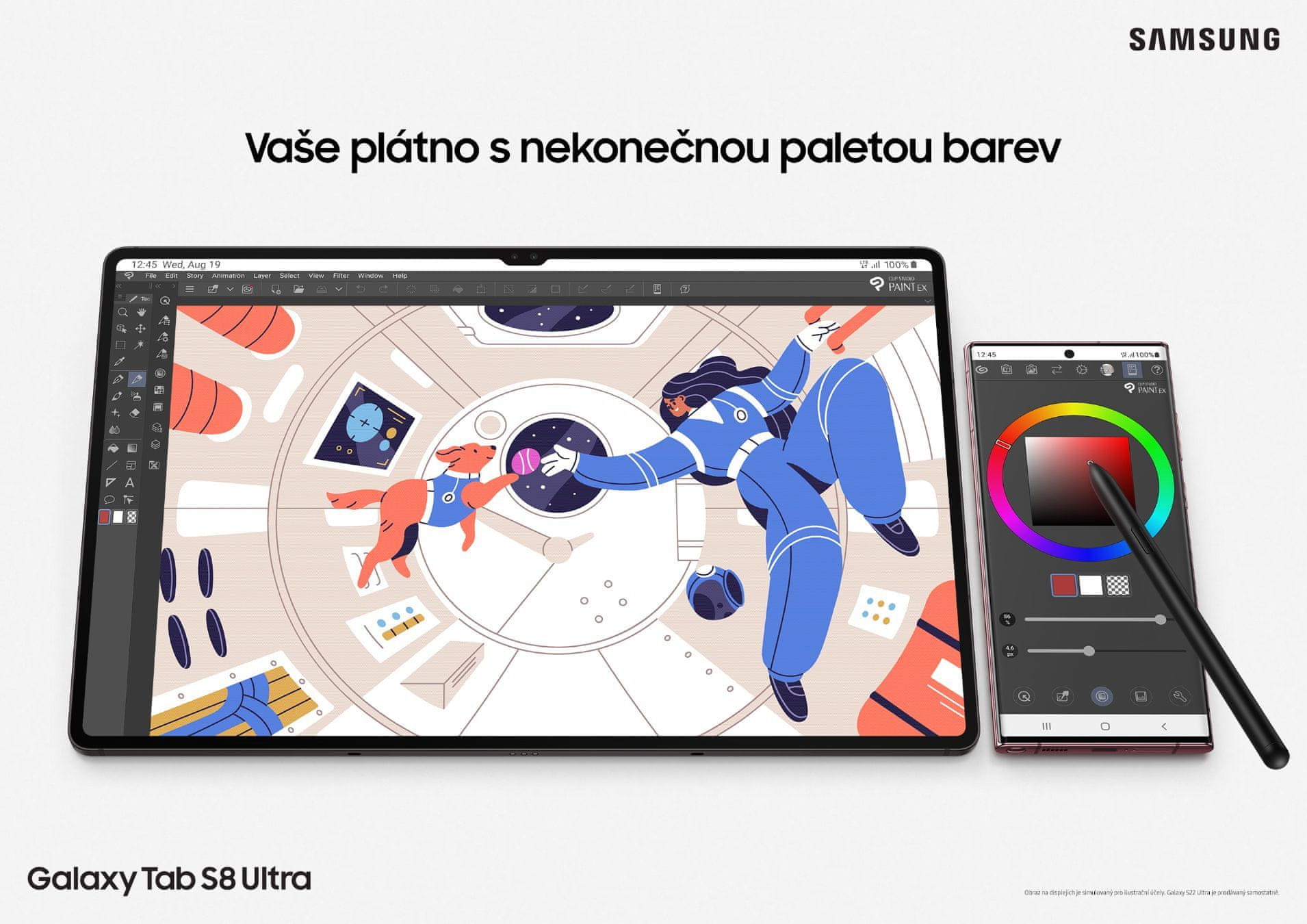 Galaxy Tab S8 serija in Galaxy S22 serija delujeta kot izjemno platno z izjemno paleto. Izberite čopiče na svojem telefonu, pri tem pa naj vaše platno ostane razločno.
