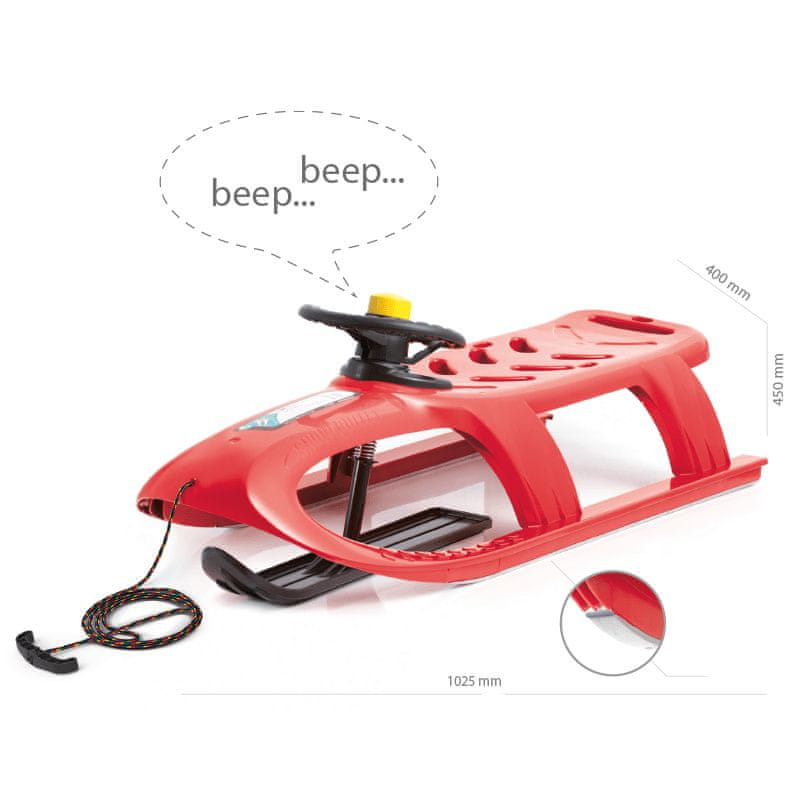 Sani so izdelane iz visoko odporne plastike in opremljene z jeklenimi drsniki, ki zagotavljajo popoln zdrs po snegu.