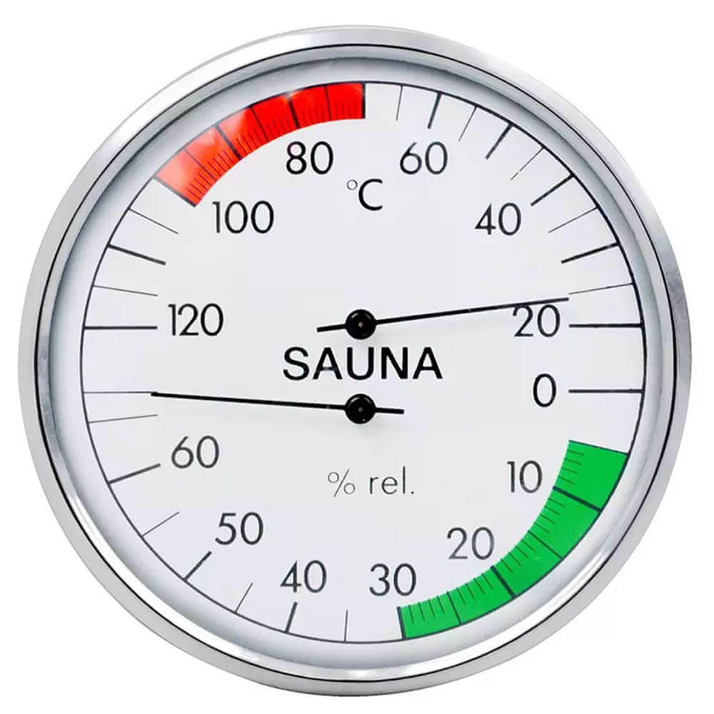 Savna termometer in higrometer za merjenje temperature in vlažnosti v savni. Zasnovan za visoke temperature in vlažna okolja. Idealen za finsko savno, pa tudi za infrardeče ali bio savne.