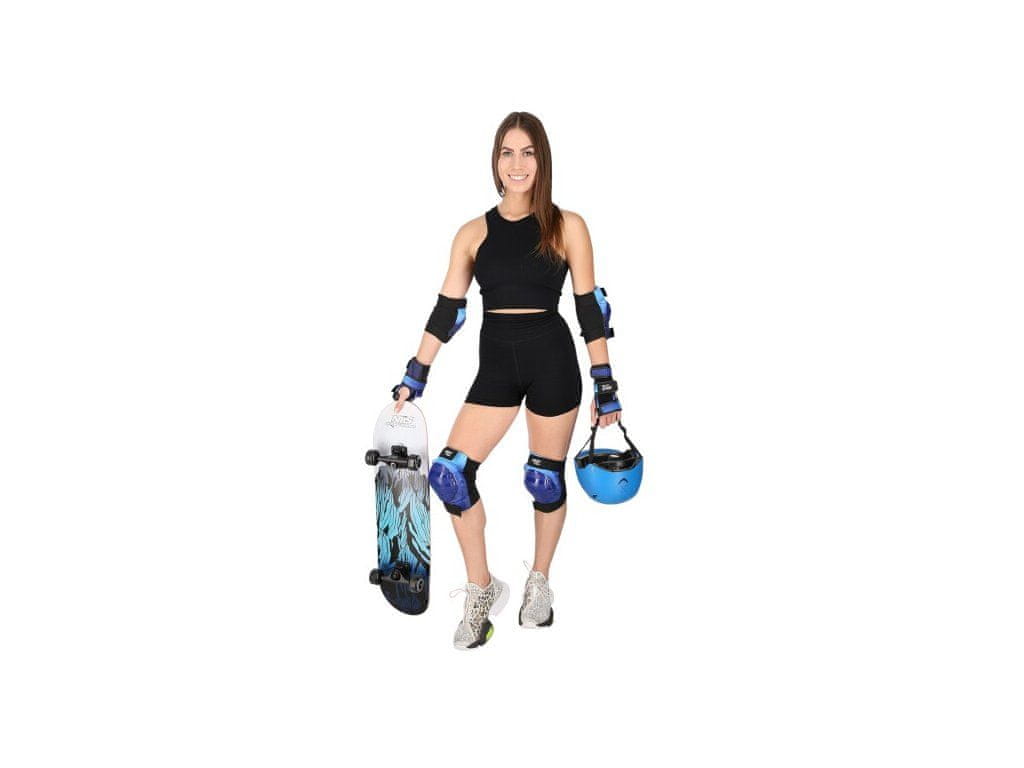 Komplet ščitnikov za zapestja, komolce in kolena. Izdelan iz kakovostnih materialov. Lupina je izdelana iz močne in lahke plastike, ki zagotavlja maksimalno zaščito zapestij, komolcev in kolen pred poškodbami. Vsi ščitniki imajo velcro zapiranje, ki jih ohranja na svojem mestu. Ščitniki so zasnovani tako, da se uporabniki ne počutijo le varno in udobno, temveč zahvaljujoč izvirnim barvam in modnim vzorcem tudi elegantno. Komplet vsebuje: – ščitnike zapestij – 2 komada- ščitnike komolcev – 2 komada- ščitnike kolen – 2 komada