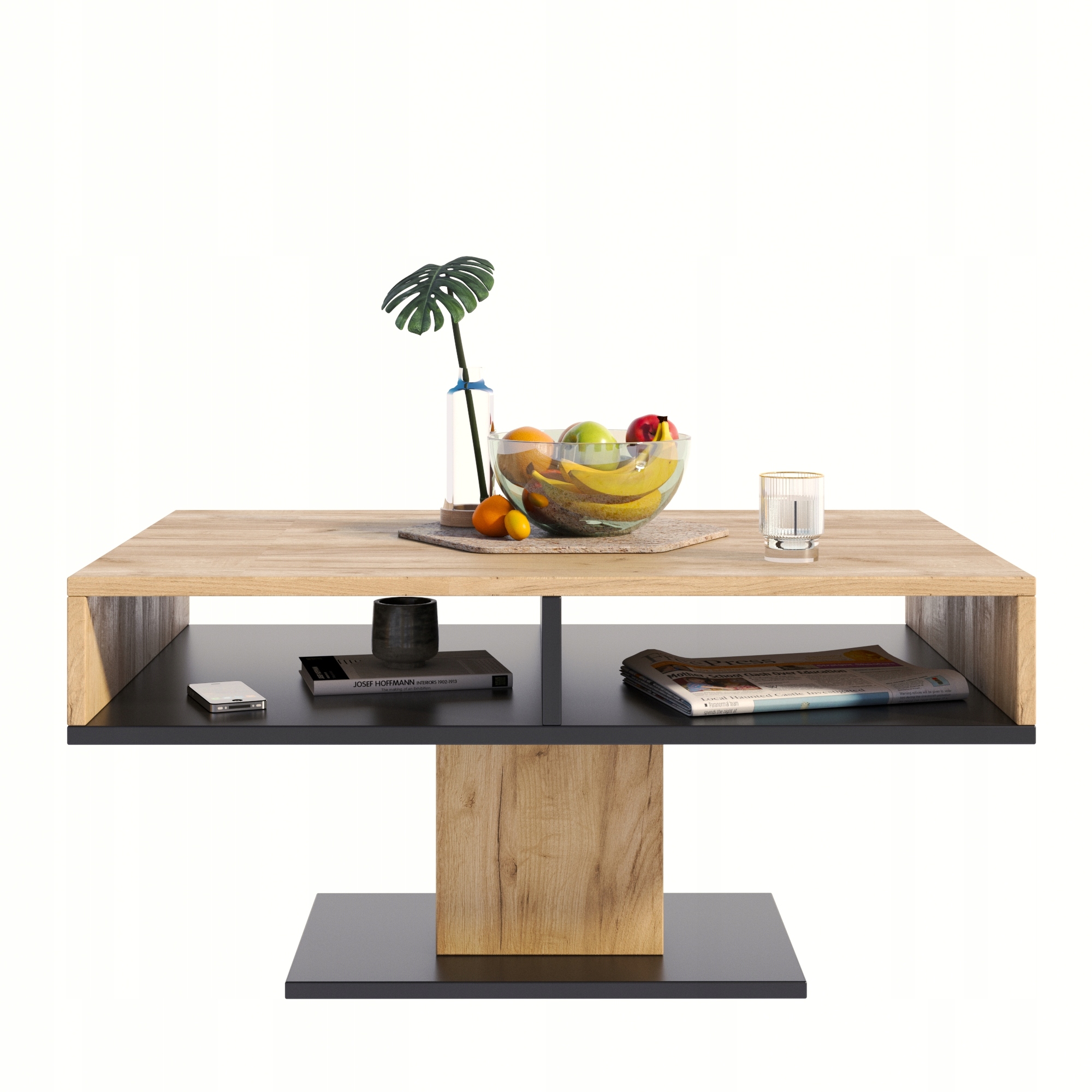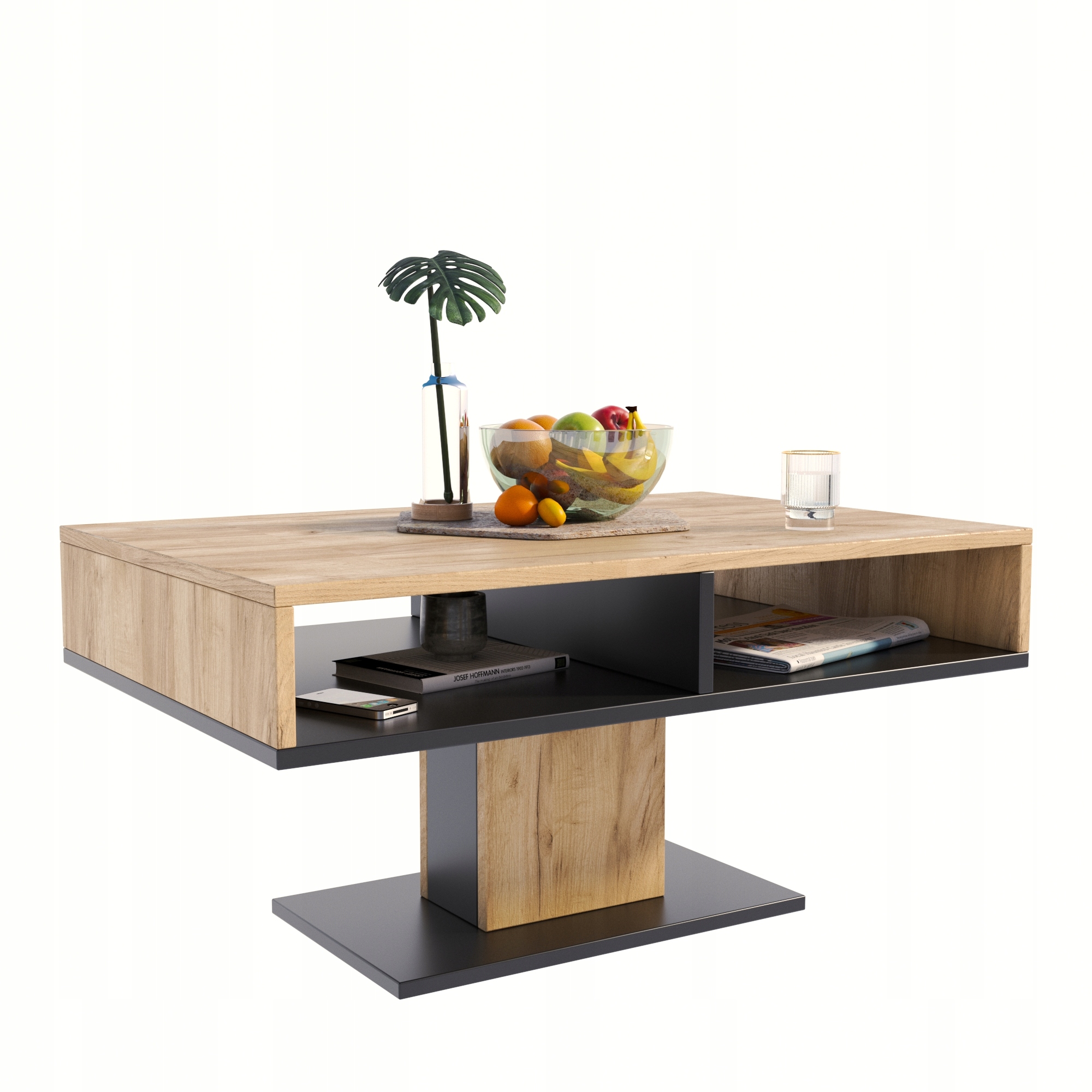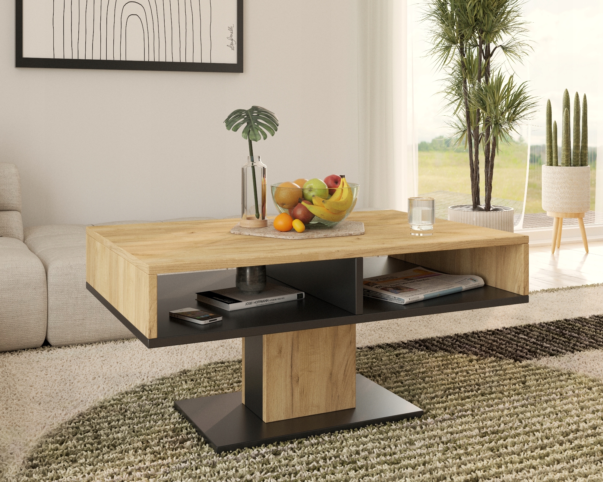 shumee INES klubska mizica, umetniški hrast-črna, skandinavska klubska mizica PER