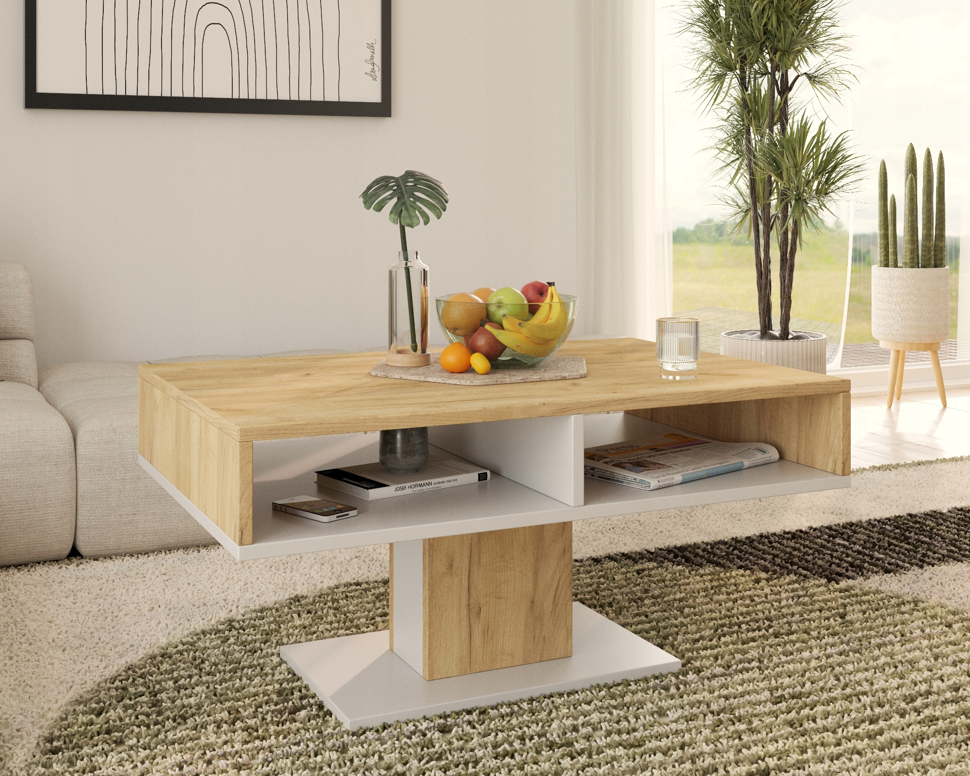 shumee INES klubska mizica, umetniški hrast-bela, skandinavska klubska mizica PER