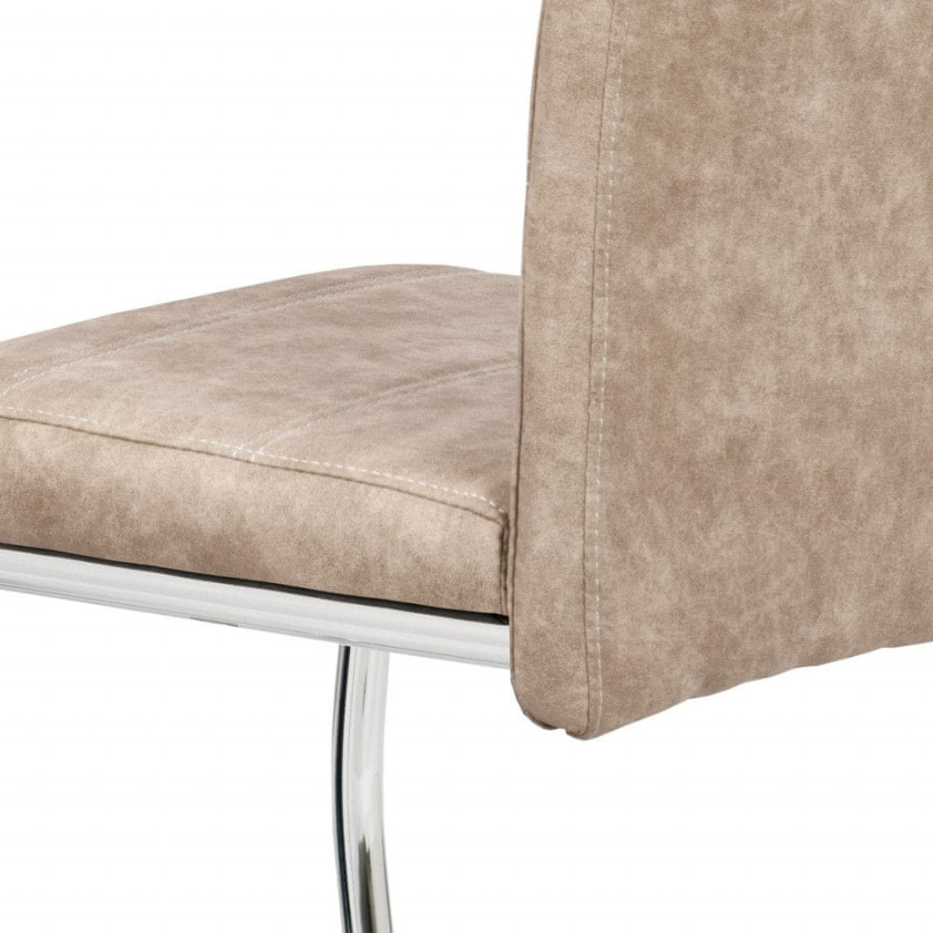 Autronic Jedilni stol, pokrivna kremasta tkanina KAVBOJ v vintage usnjenem dekorju, kovinski krom HC-483 CRM3