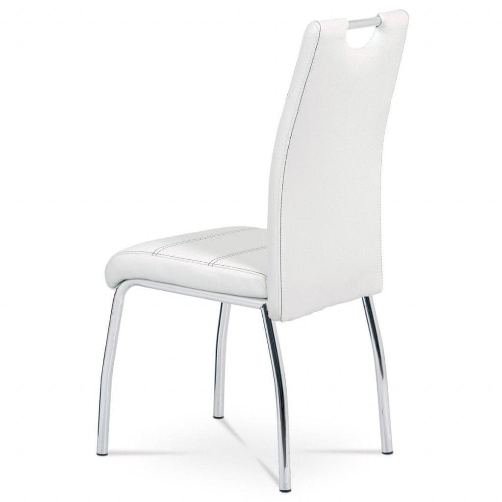 Autronic Jedilni stol, pokrov belo eko usnje, Črna šivanje, kovinski štirinožni kromirano HC-484 WT