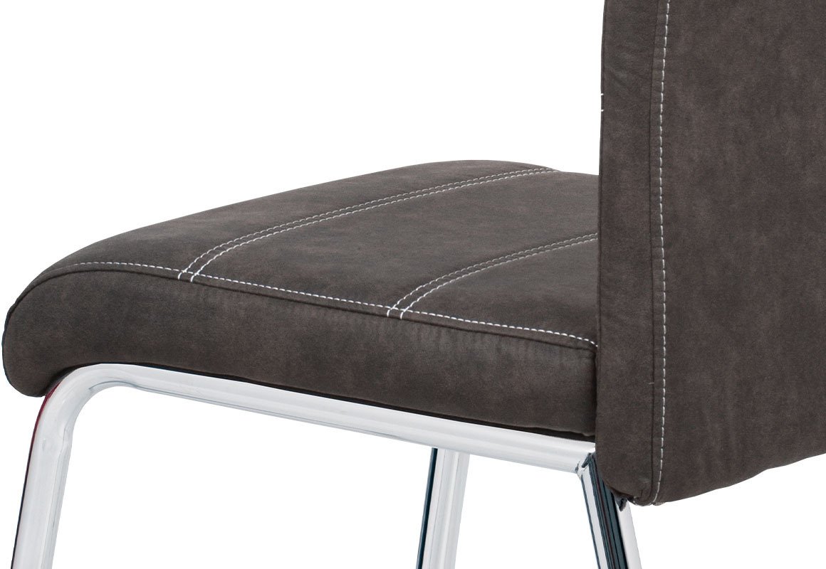 Autronic Jedilni stol, pokrov siv snov KAVBOJ v vintage usnjenem dekorju, beli šivi, kovina HC-486 GREY3