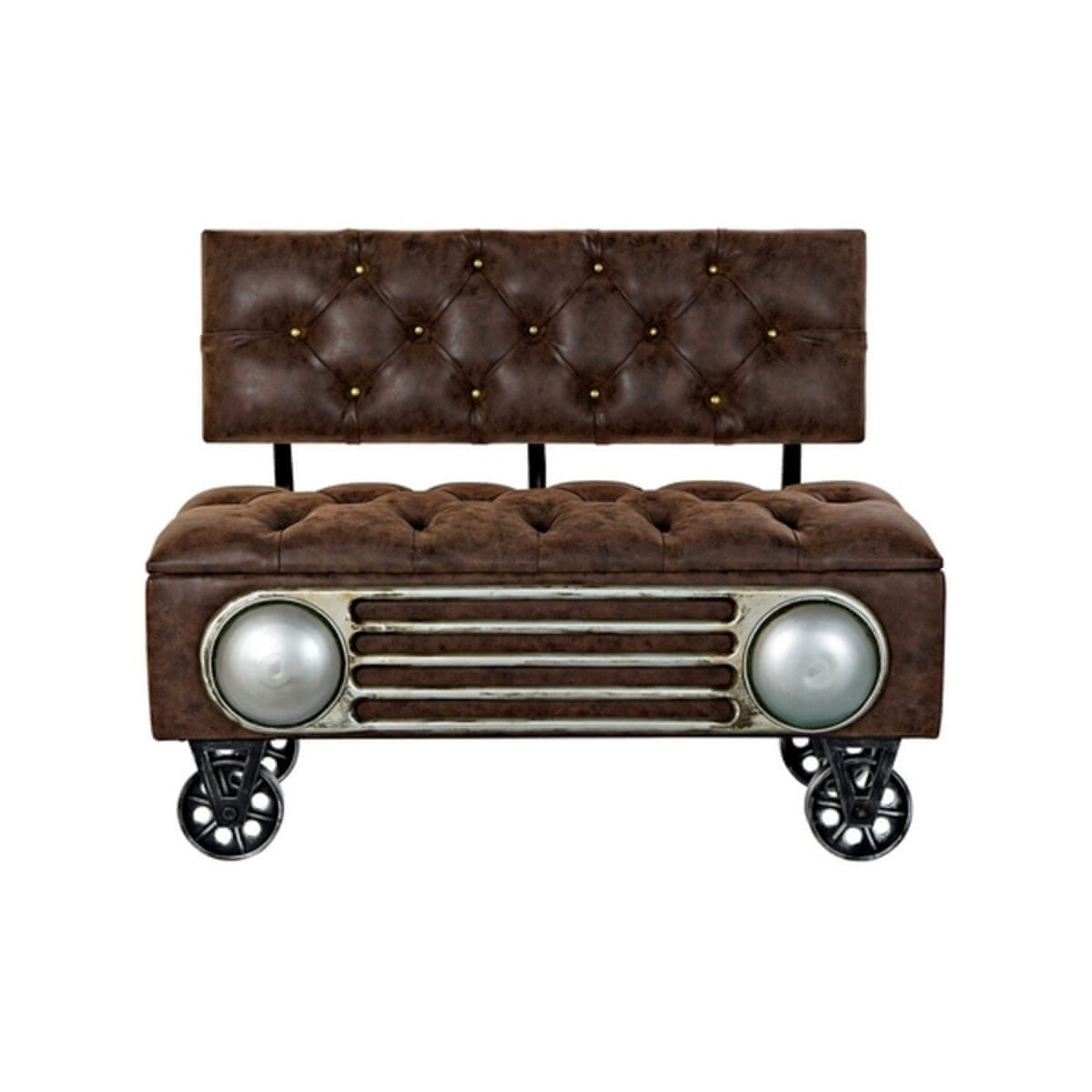 BigBuy Prtljažnik s sedežem DKD Home Decor Avtomobilski les Rjava PVC PU (101 x 55 x 77 cm)