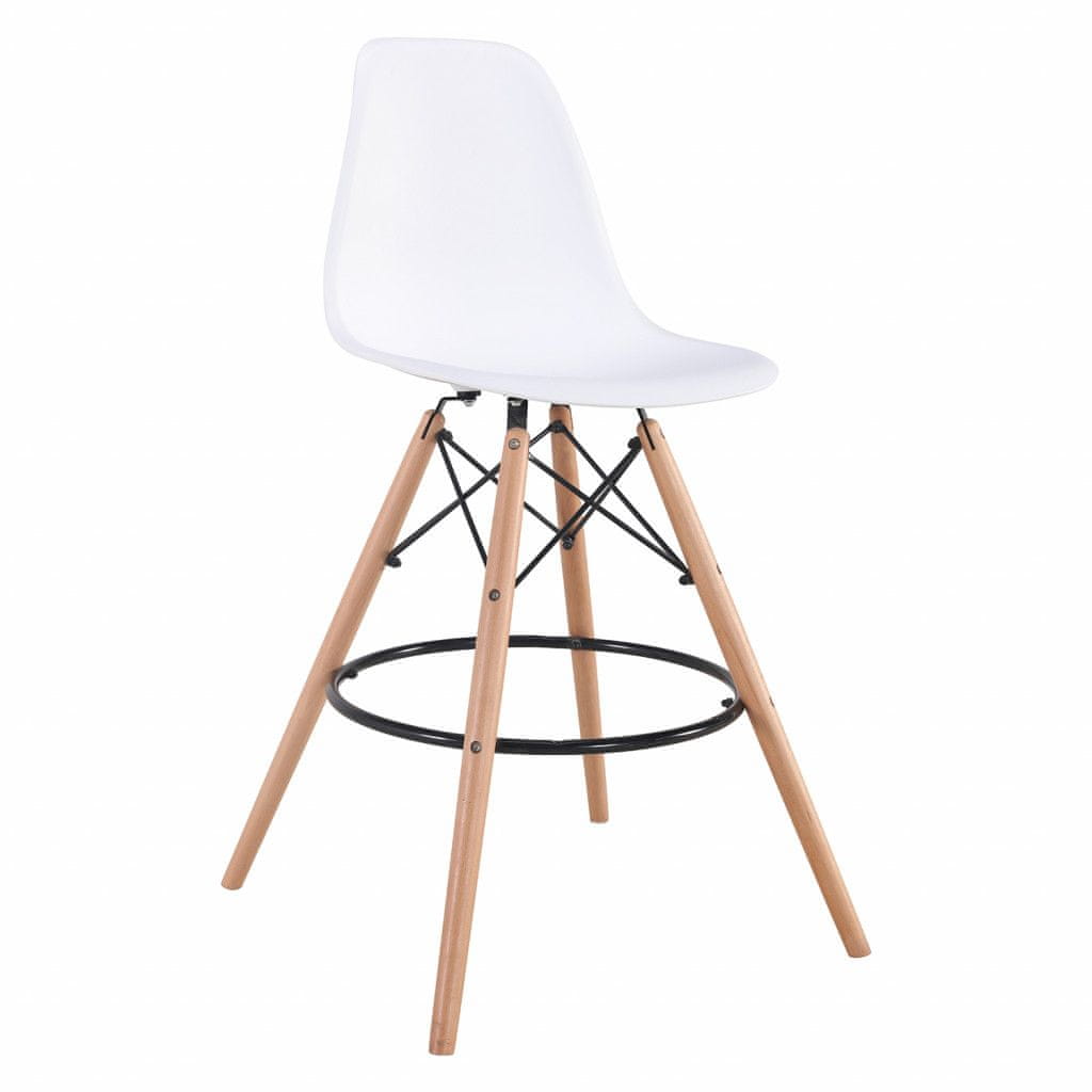 material sedeža PP, barva bela kovinska konstrukcija, masivne bukove noge, višina sedeža 68 cm Celoten opis