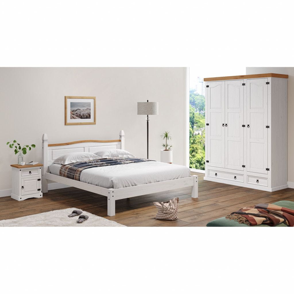material masivni bor, voskan v belem odtenku sedež masivni bor, voskan v medenem odtenku višina sedeža 46 cm del kompleta Corona white Celoten opis