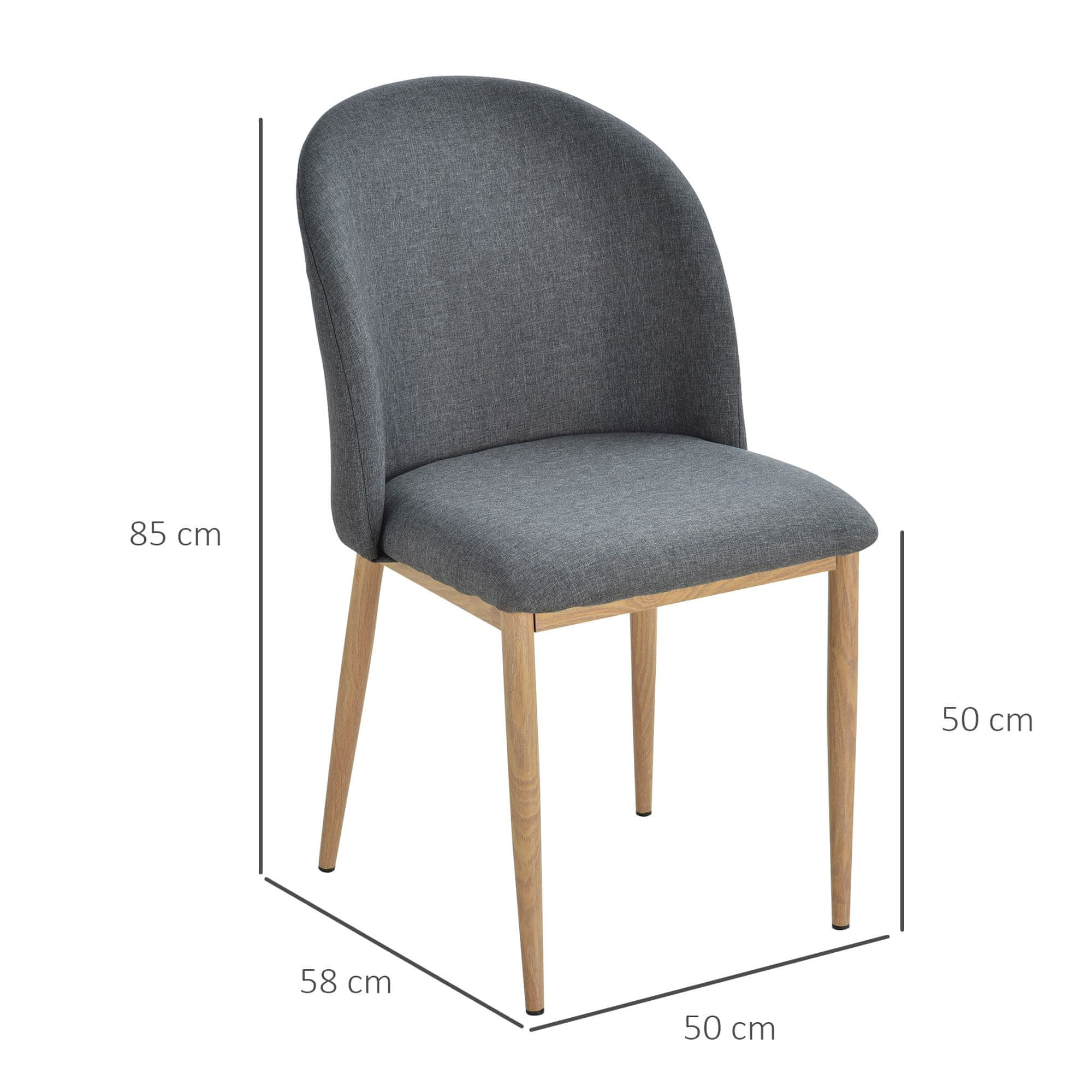 HOMCOM Komplet 2 jedilnih stolov, ergonomski oblazinjeni sedež z jeklenimi nogami in platneno prevleko 50 x 58 x 85 cm
