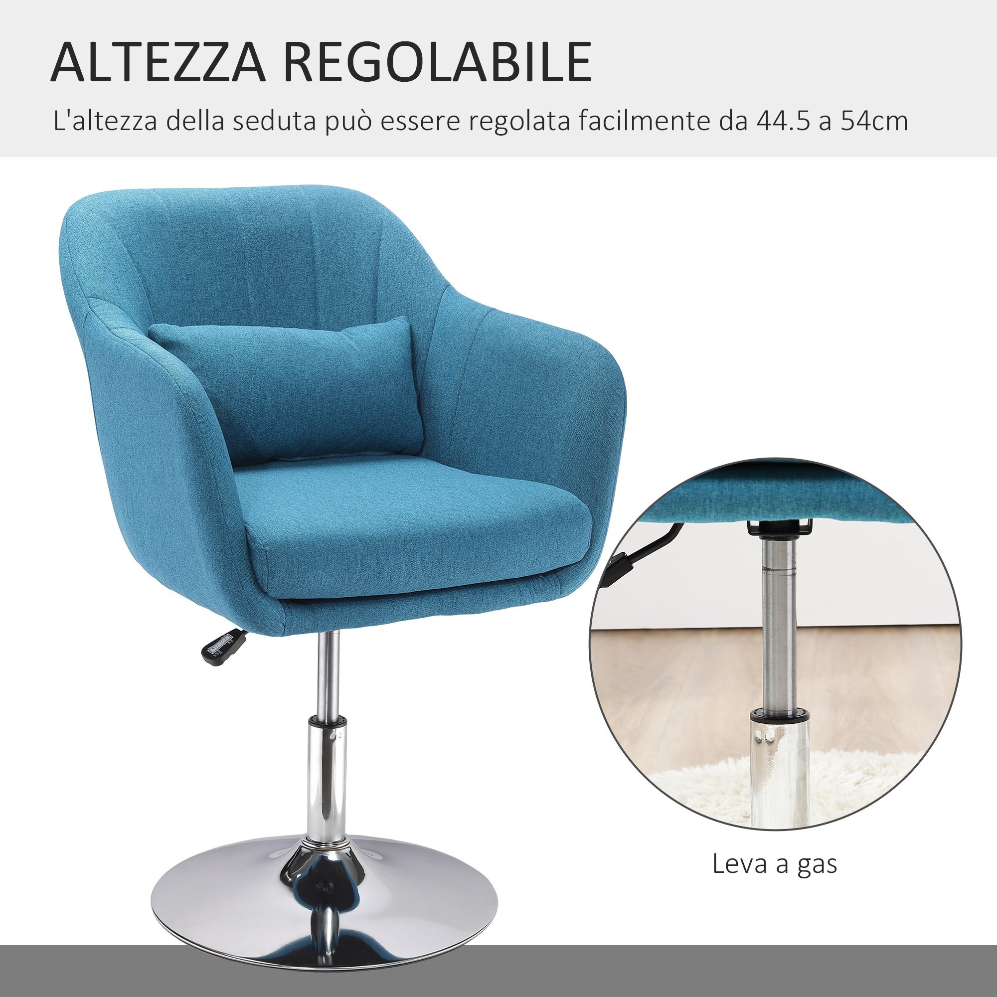 HOMCOM pisarniški vrtljivi stol z ergonomsko obliko, nasloni za roke in nastavljivo višino, kovina in modro platno