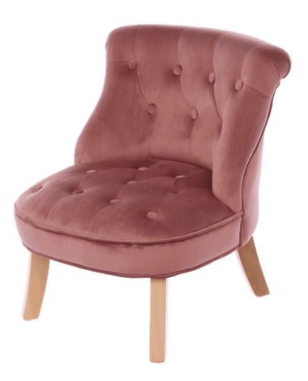 Otroški fotelj Principesa iz velurja v svetlo roza barvi. Fotelj z velikostjo sedeža 49×48 cm in skupno višino 53 cm je oblazinjen z mehkim velurjem v pastelni barvi. Nizek fotelj na štirih lesenih nogah je zelo značilen. Odlikuje ga presenetljivo, rahlo nagnjeno naslonjalo. Tako naslonjalo kot sedež imata prešitje na velurskem oblazinjenju. Fotelj iz kolekcije Vanity bo dopolnil ureditev dnevne sobe, garderobe ali spalnice ter notranjosti dodal šik in eleganco. Eleganca in klasika, zaprta v žametno pohištvo. Vanity je zbirka prešitih puhov, foteljev, stolov in zofe v toplih barvah. Lahki, mehki in majhni kosi pohištva, ki jih je mogoče zlahka namestiti v majhne interierje, bodo ustvarili jesensko in zelo prijetno vzdušje.