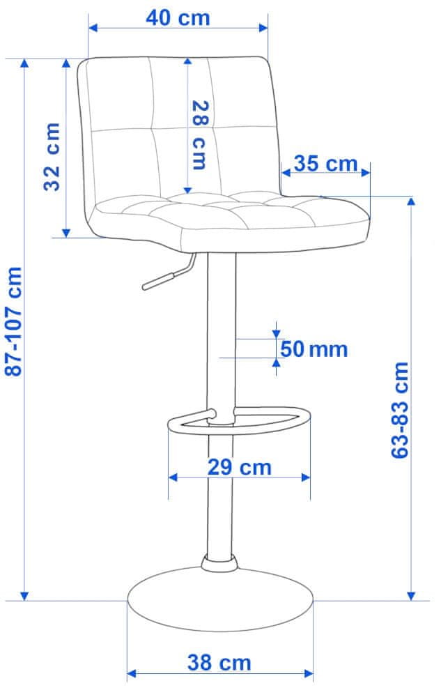Barski stol Arako črne barve Model: ARAKO | Barva: črna Oblazinjen z eko usnjem Udoben sedež Sodoben dizajn Največja nosilnost 120 kg Nakup neposredno pri proizvajalcu Italijanski dizajn barskega stola Arako še naprej uživa neomajno priljubljenost. Ni čudno – popolnoma oblikovan hrbet in udoben sedež zagotavljata izjemno udobje. Kromirano podnožje skriva teleskopsko dvigalo in ročaj, kar vam omogoča enostavno prilagajanje višine stola vašim potrebam. Ponujamo 24-mesečno garancijo proizvajalca. Prednosti barskega stola Arako: Zanimivi, geometrijski šivi – Barski stol Arako izstopa ne le zaradi udobja in elegance, temveč tudi zaradi edinstvenega vzorca na sedežu, kjer zanimivi geometrijski šivi ustvarjajo prešit mrežast vzorec, ki mu daje edinstven značaj. Zaradi teh podrobnosti je barski stol izjemno privlačen in je popoln dodatek k sodobni notranjosti. Oblazinjen z mehkim eko usnjem, visokokakovostno oblazinjenje zagotavlja prijetno, mehko izkušnjo med uporabo. Njegova razkošna tekstura doda eleganco in prefinjen slog vsaki notranjosti. Kromirani elementi – Kromirani elementi dodajo stolu Arako sodoben značaj in eleganten zaključek, zaradi česar je izjemno privlačen element notranje opreme. Njihova površina se ujema s sijajnim oblazinjenjem, kar daje celotni konstrukciji ekskluziven in sodoben videz. Nastavitev višine – Stol je opremljen z najsodobnejšim aktuatorjem, ki omogoča gladko nastavitev višine sedeža, kar uporabniku zagotavlja optimalno nastavitev sedeža v želeni položaj. Ta funkcija zagotavlja izjemno udobje, hkrati pa omogoča prilagoditev stola različnim višinam pulta. Vrtenje za 360° – Ta model ponuja popolno svobodo gibanja zahvaljujoč vrtljivi zasnovi, ki uporabniku omogoča vrtenje za 360 stopinj. Ta funkcija omogoča enostavno premikanje po mizi ali baru, ne da bi bilo treba dvigniti ali premikati celoten stol. Tehnične značilnosti izdelka Sedež, oblazinjen v eko usnje Kromirani elementi Nastavitev višine Vrtenje za 360 stopinj Nedrseče podnožje Ergonomski naslon za noge Priročen ročaj za nastavitev višine sedeža Čas, potreben za zlaganje: 1–2 min Dimenzije izdelka Največja višina: 107 cm Najmanjša višina: 87 cm Največja višina sedeža: 83 cm Najmanjša višina sedeža: 63 cm Premer podnožja 38 cm Premer teleskopskega dvigala: 50 mm Globina sedeža: 35 cm Širina sedeža: 40 cm Širina naslonjala: 40 cm Višina od sedeža do naslonjala: 28 cm Dodatne informacije Prikazane barve so zgolj ilustrativne – zaradi različnih nastavitev monitorja in postopka obdelave fotografij se lahko razlikujejo od dejanskih. Dejanske dimenzije se lahko razlikujejo od zgoraj navedenih. Toleranca napake je lahko +/- 5 %. OPOMBA | Na aktuatorju je zaščita (črni pokrovček), ki jo je treba pred uporabo sedeža odstraniti. Blagovna znamka: eHokery Koda izdelka: 5907439170364(1) EAN koda: 5902340307021 Barva: črna Višina: 107 cm Širina: 40 cm Material sedeža: eko usnje Osnovni material: kovina Predvidena uporaba: jedilnica | kuhinja | dnevna soba | pisarna | restavracija | bar Samostojna montaža: da