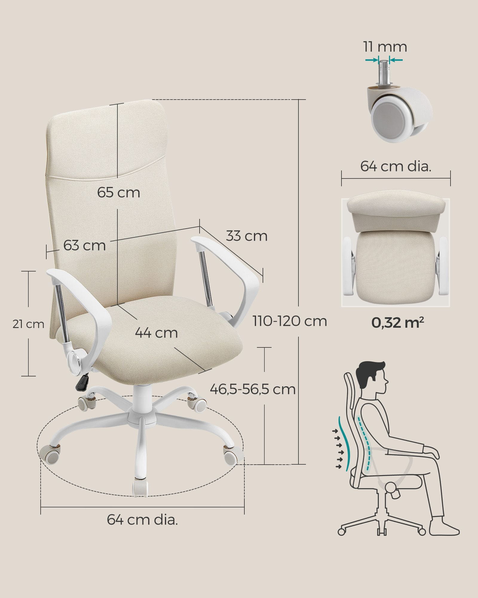 Songmics Pisarnaški stol, 58x59x114.7-122.7 cm, krem