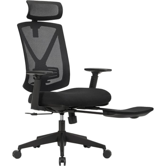 SONGMICS OBN61BKV1 Ergonomski pisarniški stol z naslonom za noge, pisarniški stol z ledveno oporo, nastavljivim naslonom za glavo in roke, nastavitvijo višine in funkcijo kolebanja, največja obremenitev 150 kg, črn
