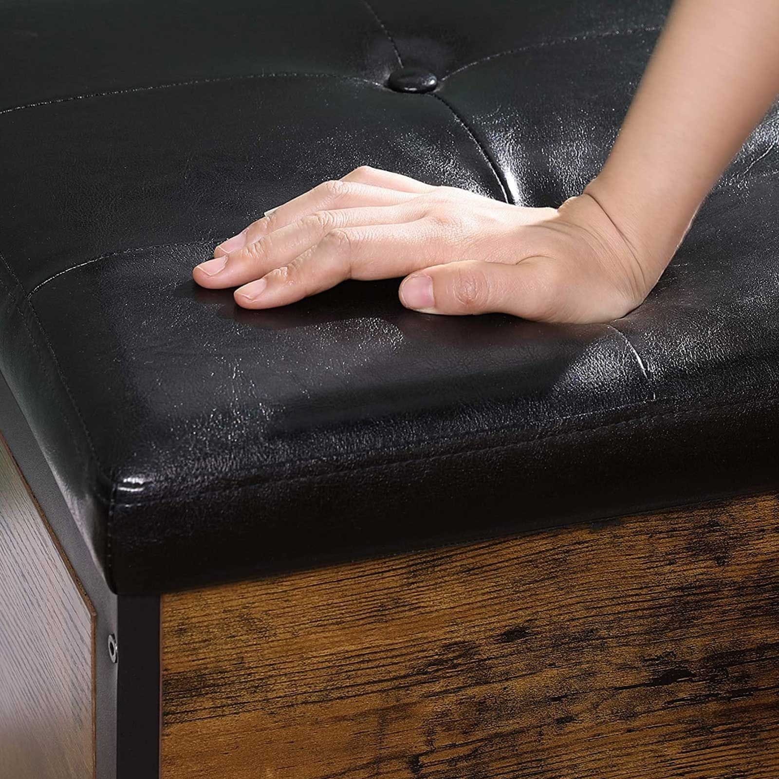 Ta vsestranska shranjevalna klop je zasnovana tako da nudi udobno sedenje in praktično shranjevanje za vaš hodnik spalnico ali dnevno sobo. S svojim industrijskim slogom in vintage rjavo-črno barvno shemo doda pridih elegance vsakemu notranjemu prostoru. Oblazinjeno sedišče in robustna konstrukcija jo naredijo idealno za vsakodnevno uporabo.