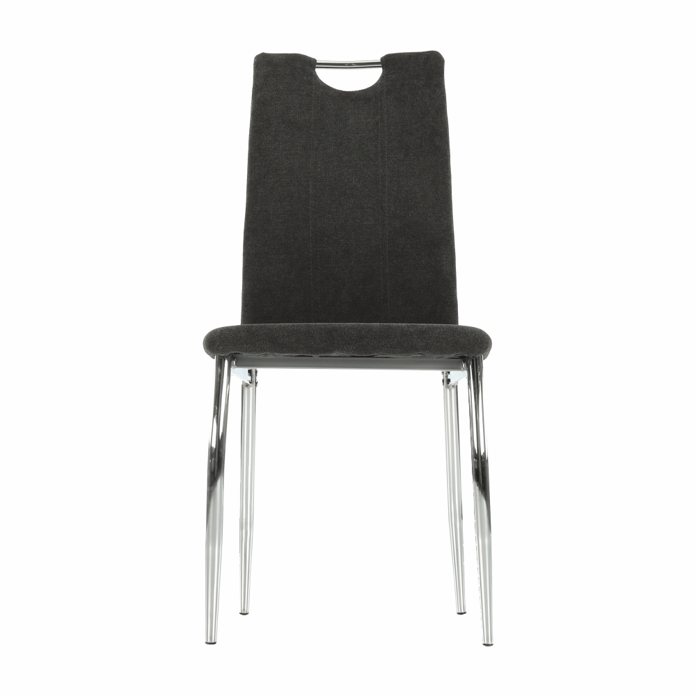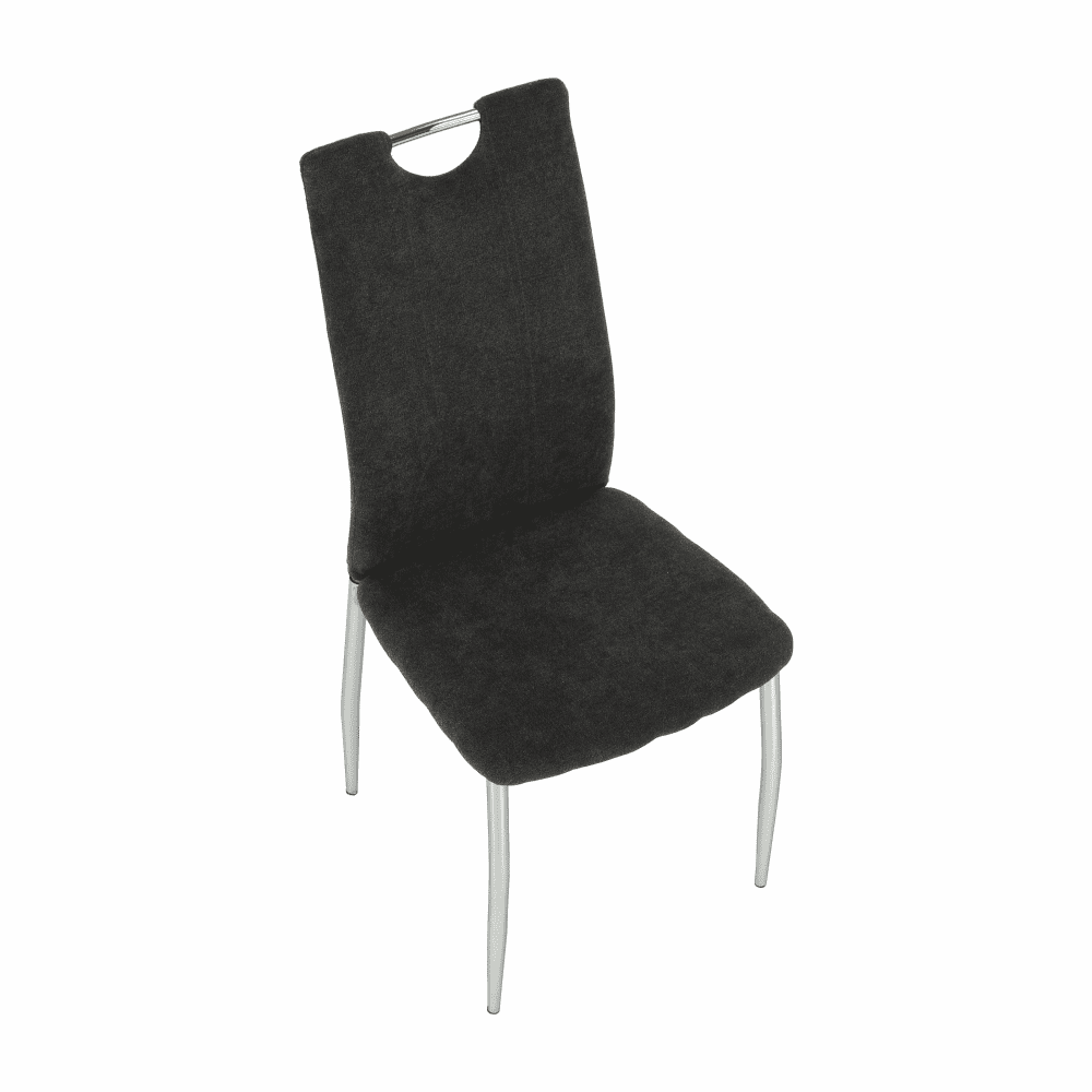 Jedilni stol OLIVA NEW iz rjavo-sive tkanine s kromiranimi nogami.