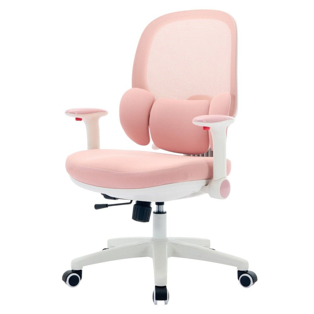 Stol TRESA je zasnovan za maksimalno udobje in podporo pri vsakodnevnem sedenju. Idealna izbira za študente, ki potrebujejo funkcionalen in ergonomičen prostor za učenje in sprostitev. Združuje moderno obliko s praktičnimi lastnostmi, zaradi česar se odlično prilega otroški ali študentski sobi. Zahvaljujoč višinsko nastavljivemu sedežu (45 – 55 cm) se enostavno prilagodi postavi uporabnika in višini pisalne mize. Skupne dimenzije stola so 62,5 cm v širino, 58 – 65 cm v globino, višina pa se giblje od 96 do 105 cm, kar zagotavlja dovolj prostora tudi za višje uporabnike. Sedež ima širino 50 cm in globino 49 cm, kar zagotavlja udobje skozi ves dan. Višina ergonomsko oblikovanega hrbtnega naslonjala je 56 cm, njegova širina pa 45 cm – idealno razmerje za pravilno oporo hrbta. Gugalni mehanizem podpira naravno gibanje, sprošča hrbtenico in prispeva k boljši osredotočenosti. Ledvena opora z možnostjo aretacije pomaga ohranjati zdravo držo telesa in zmanjšuje pritisk na hrbtenico. Po višini nastavljivi in zložljivi nasloni za roke se prilagodijo individualnim potrebam in omogočajo enostavno potiskanje stola pod mizo. Sodoben videz stola poudarja sveža roza mrežasta prevleka v kombinaciji z belo plastično konstrukcijo, ki deluje elegantno in zračno. Univerzalna kolesa zagotavljajo gladko premikanje po različnih vrstah tal. Nosilnost stola je do 100 kg, kar zagotavlja njegovo stabilnost in dolgo življenjsko dobo. Stol tako združuje udobje, funkcionalnost in stil v enem ter je idealen za vsakodnevno učenje in sprostitev.