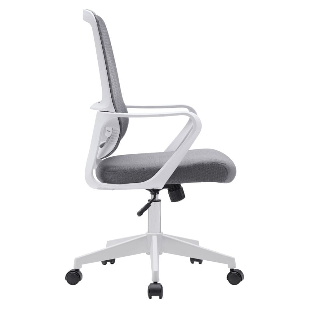 Predstavljamo vam pisarniški stol z naslonjali Salomo Tip 1 v elegantni kombinaciji sive in bele barve, ki je idealna rešitev za vaš delovni prostor. Ta sodoben stol znamke KONDELA je zasnovan tako, da zagotavlja maksimalno udobje med dolgimi urami, preživetimi za pisalno mizo.