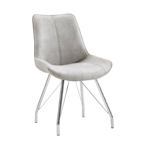 Jedilni stol MADORA Material: tkanina z učinkom brušenega usnja / krom Odpornost tkanine proti obrabi po testu Martindale: 68 000 odrgnin Barva: siva Dimenzije (ŠxVxV): 54×60×87 cm Globina sedeža: 54 cm Višina sedeža: 48 cm Nosilnost: 110 kg Dobavljeno v razstavljenem stanju. Celoten opis