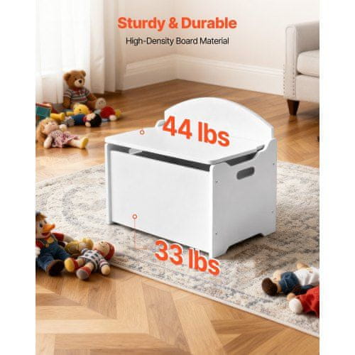 Ta otroška shranjevalna klop je zasnovana za pomoč pri organizaciji vašega doma z zagotavljanjem prostorne rešitve za shranjevanje igrač knjig oblačil in odej. Njena vsestranska zasnova omogoča uporabo tako kot udoben sedež z naslonom kot tudi kot praktično shranjevalno škatlo zaradi česar je primerna za otroške sobe dnevne sobe ali hodnike. Izdelana iz trpežnih materialov in opremljena z varnostnimi elementi ta klop zagotavlja stabilnost in mir staršem.