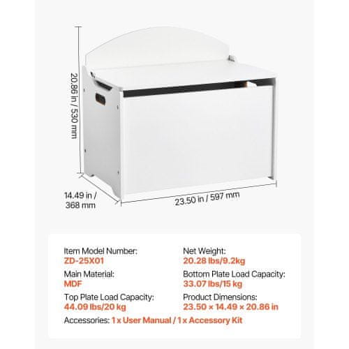 VEVOR Otroška shranjevalna klop 597x368x545 cm bela