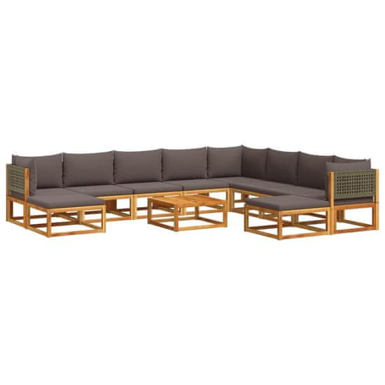 Vidaxl 11-delni vrtni komplet sedežnih garnitur z blazinami, les akacije in ratan